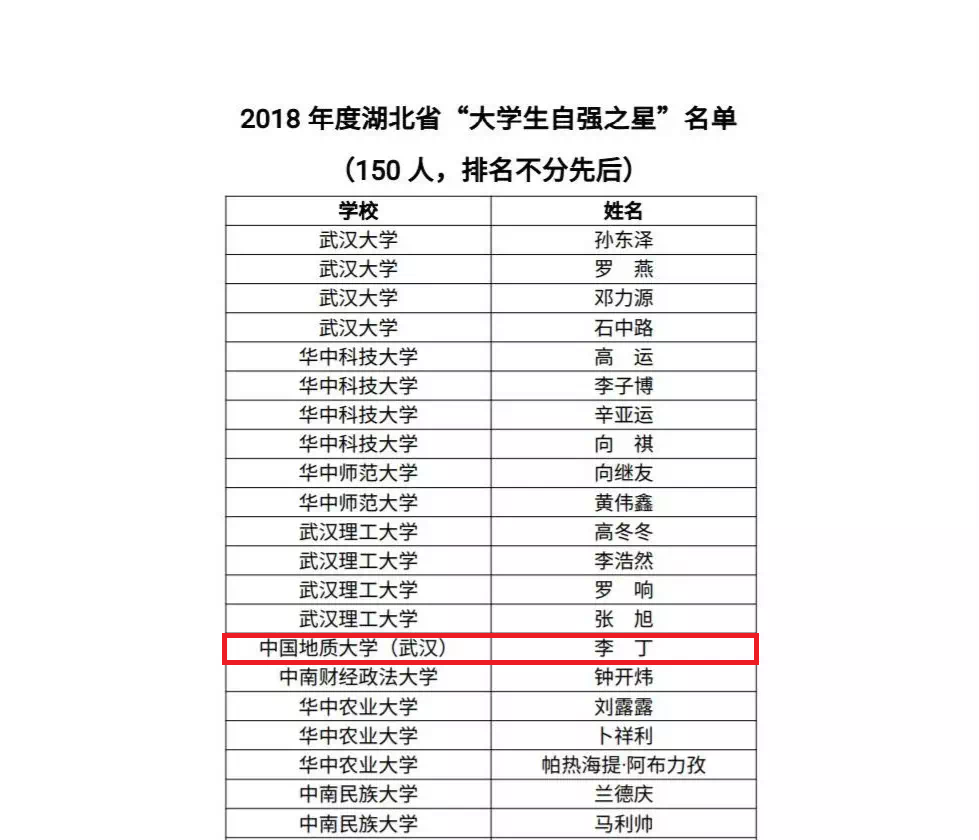 威廉希尔 本科生李丁获2018年度湖北省“大学生自强之星”并被推荐参加全国评选