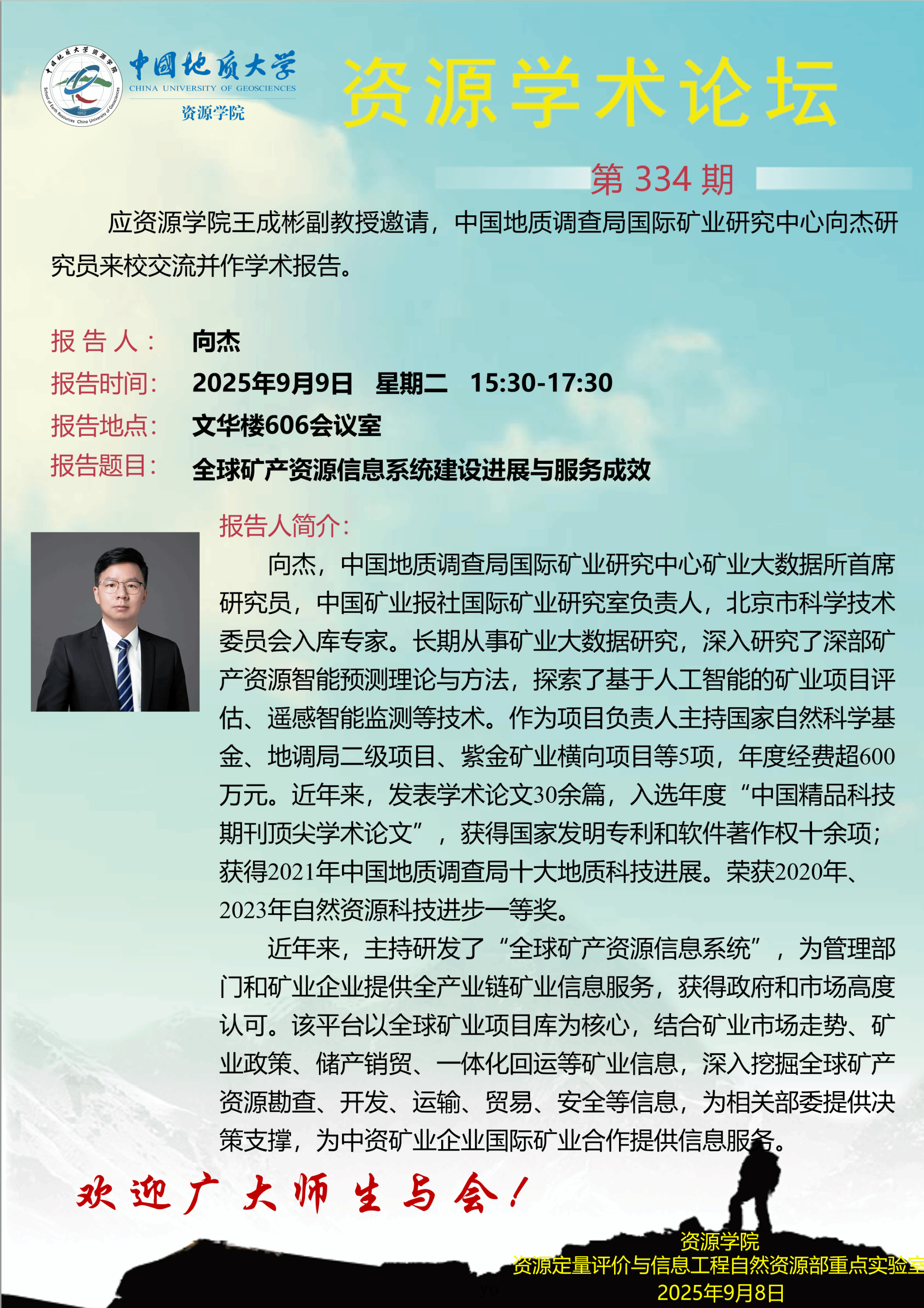 【9月9日】第334期资源学术论坛:向杰学术报告
