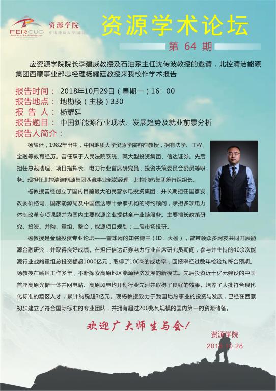 【10月29日】第64期资源学术论坛:杨耀廷学术报告