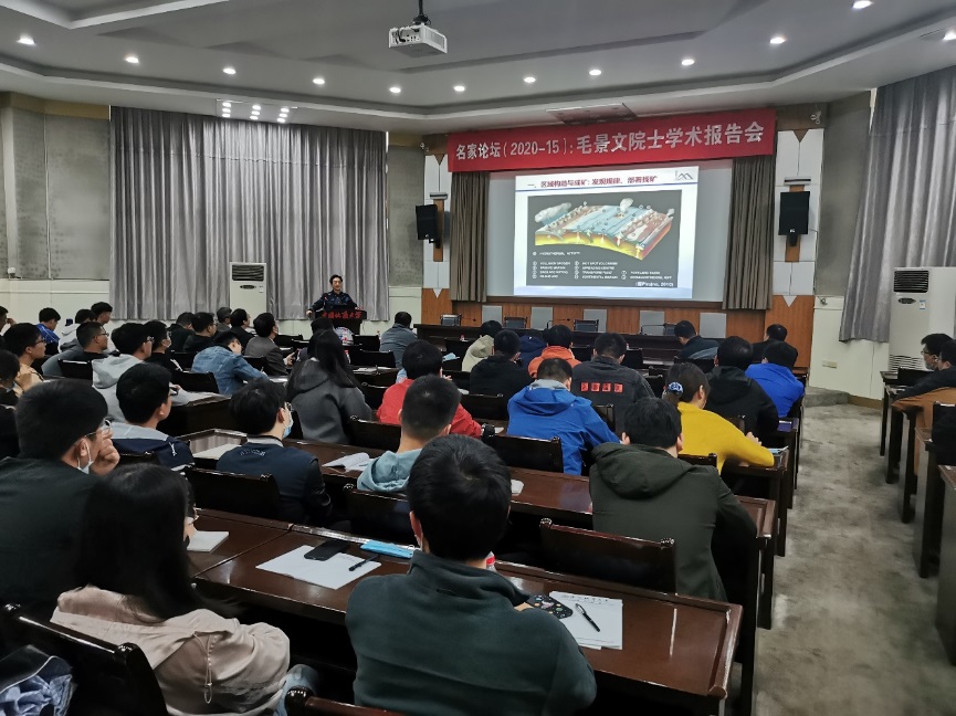 报告会最后,参会师生就深部找矿方法和矿产勘查学科发展等问题同毛景文进行讨论交流。
