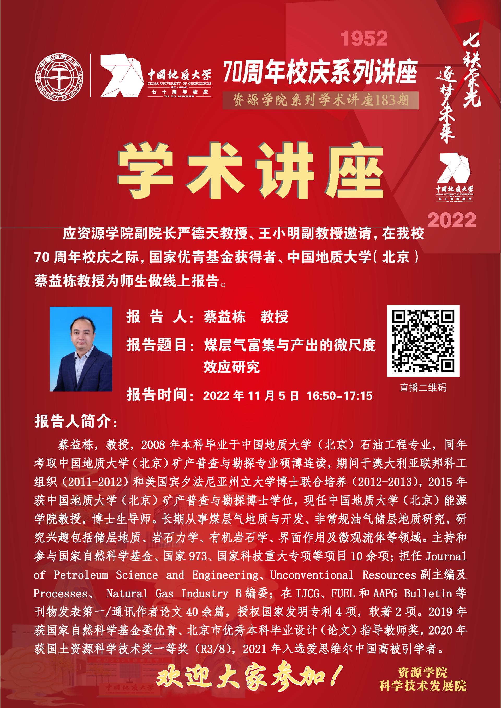 【11月5日】第183期资源学术论坛:蔡益栋学术报告