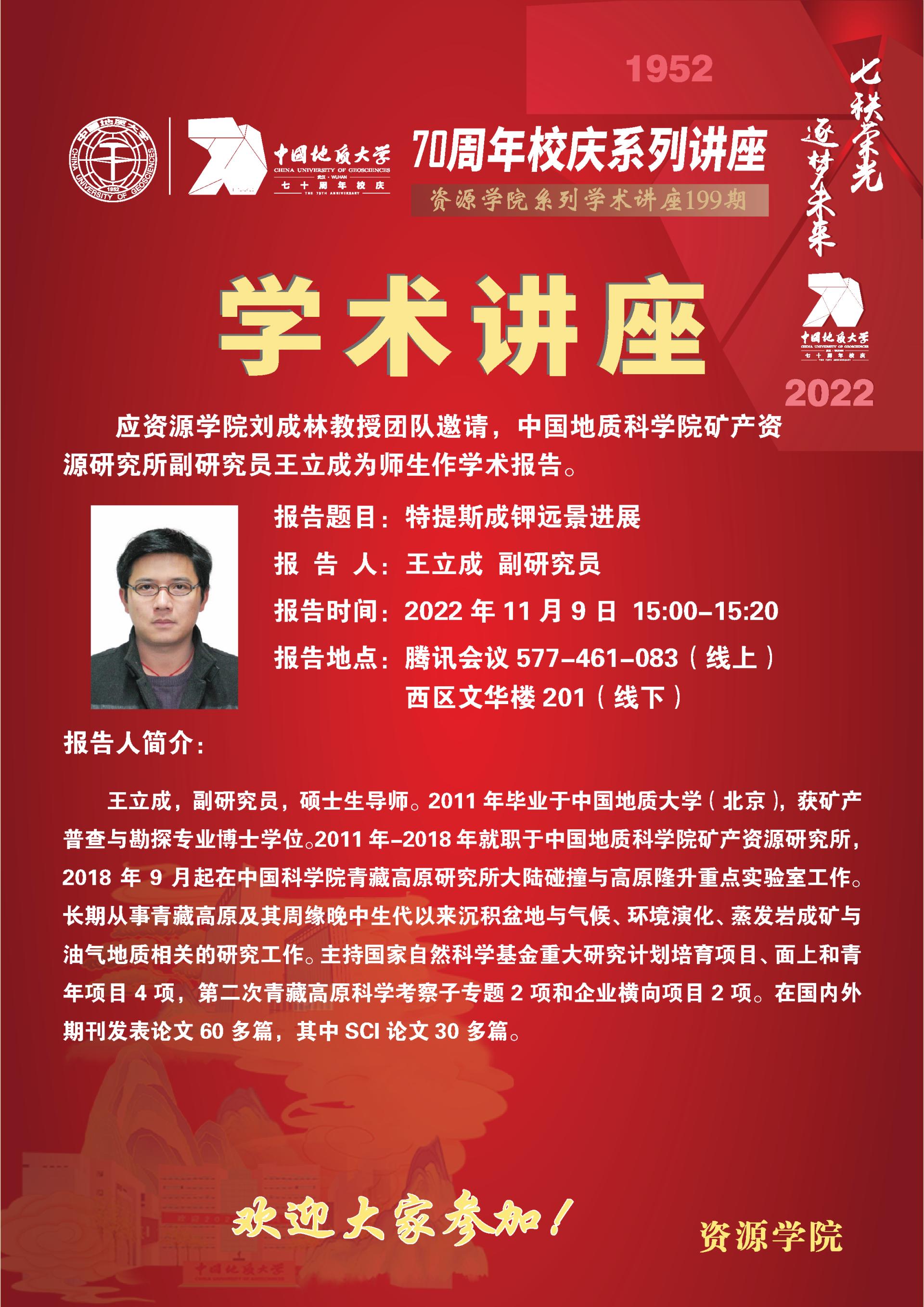 【11月9日】第199期资源学术论坛:王立成学术报告