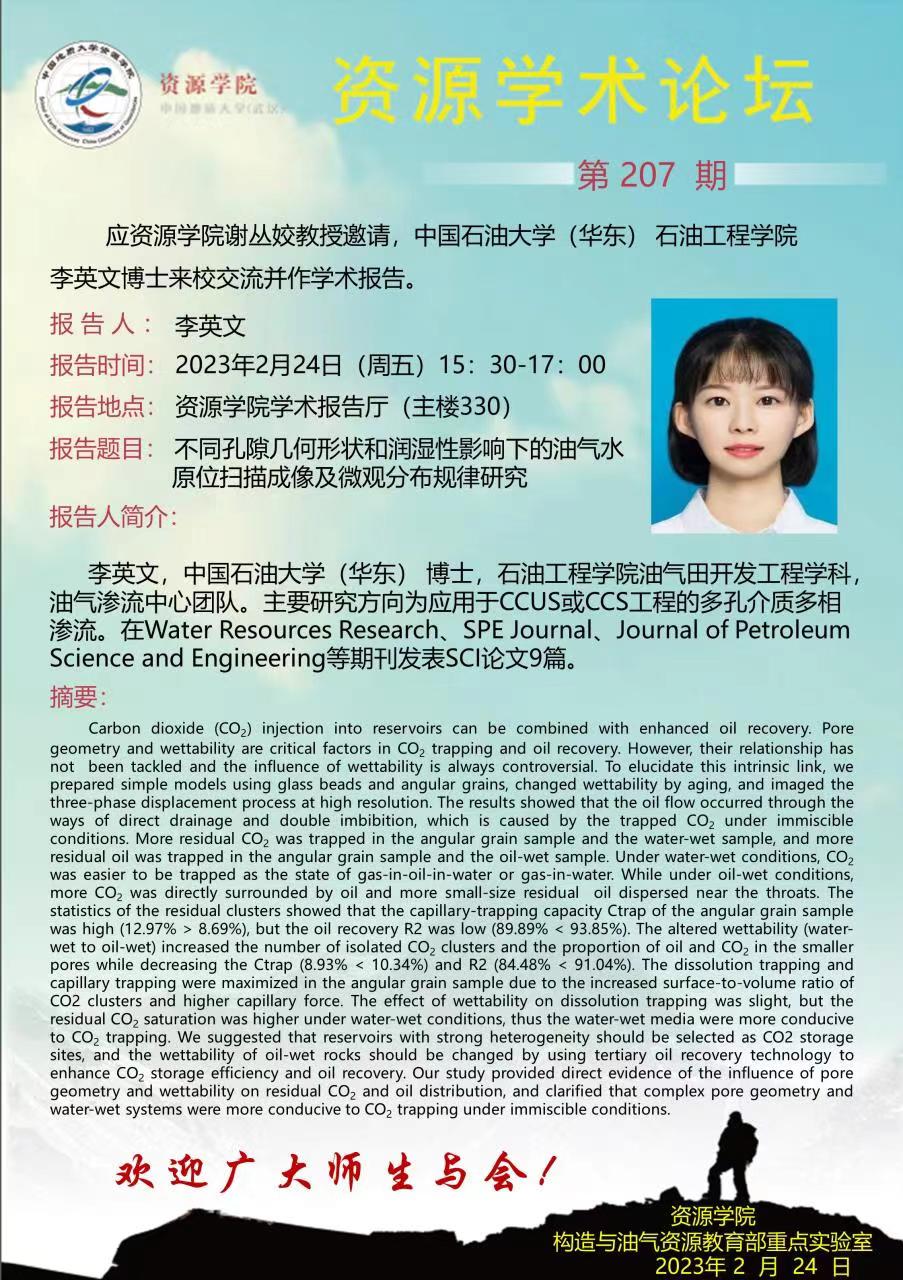 【2月24日】第207期资源学术论坛:李英文学术报告