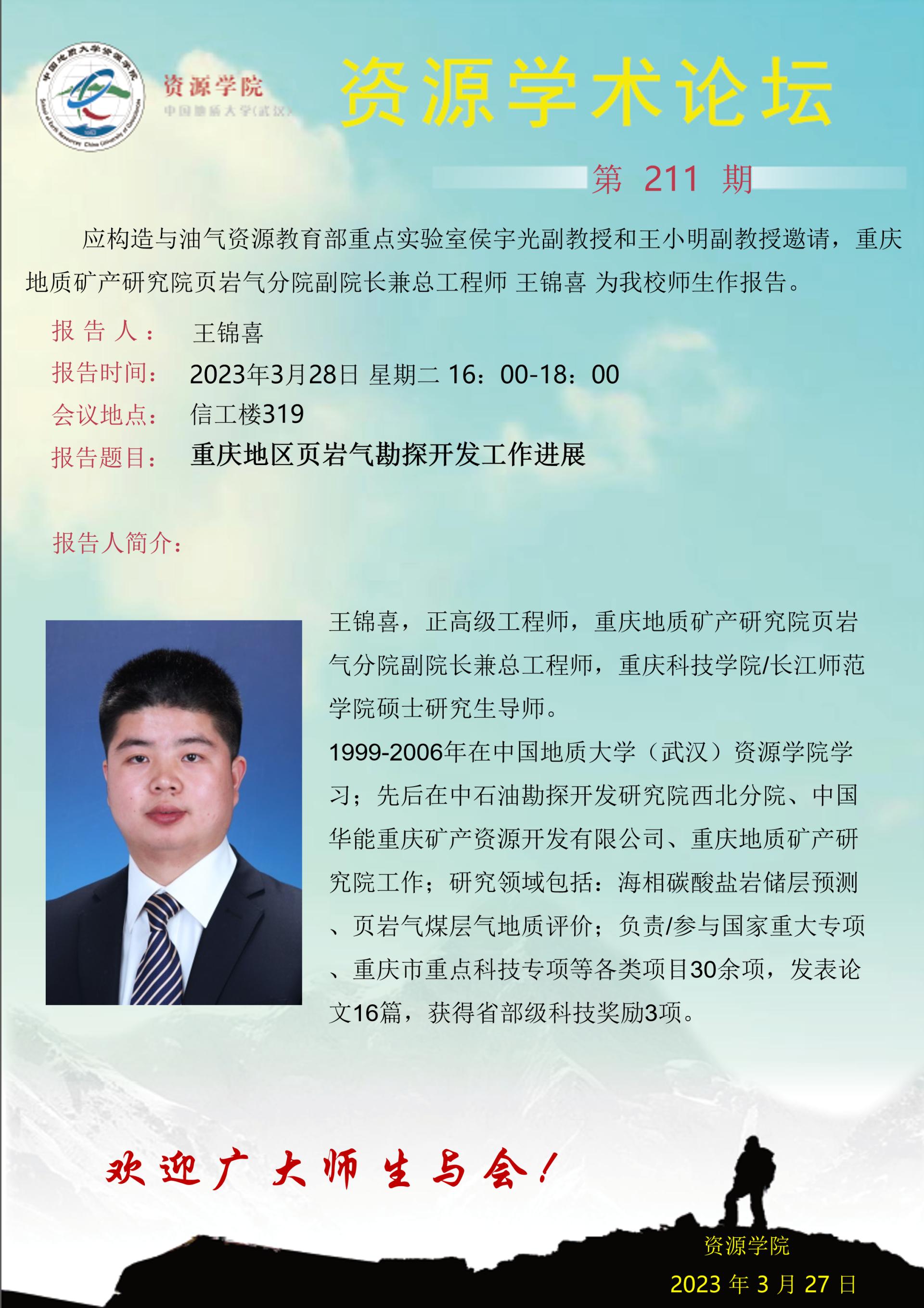 【3月28日】第211期资源学术论坛:王锦喜学术报告