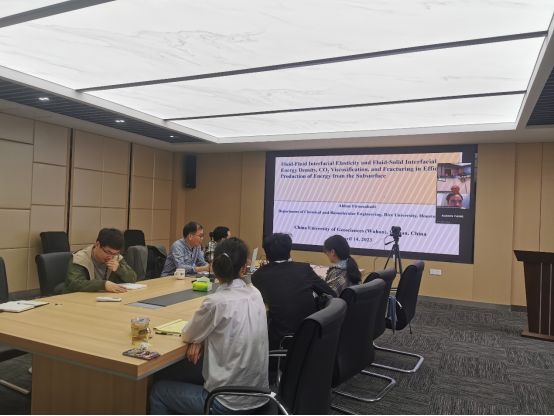 潘焕泉教授和龚斌教授邀请,美国工程院院士,美国莱斯大学杰出教授Abbas Firoozabadi作了题为“高效地层能源生产过程中的液-液界面弹性、液-固界面能量密度、CO2粘性和压裂性”的线上学术报告。