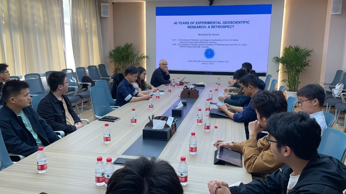 10月21日,Dr.Bernhard M. Krooss在主楼330会议室以“40年地学实验研究的回顾”为题作学术报告。在本次报告中,Dr.Krooss和与会师生分享了他在德国于力希研究中心、亚琛工业大学地质和地球化学研究所从事科研工作期间取得的科研成果和理论认识,重点介绍了煤地质和煤层气赋存和运移方面的实验技术和科学研究,向与会师生传达了宝贵的知识和见解。报告结束后,与会师生与Dr.Krooss围绕报告内容和出国访学交流等相关问题进行了深入讨论,最终报告在热烈掌声中圆满结束。