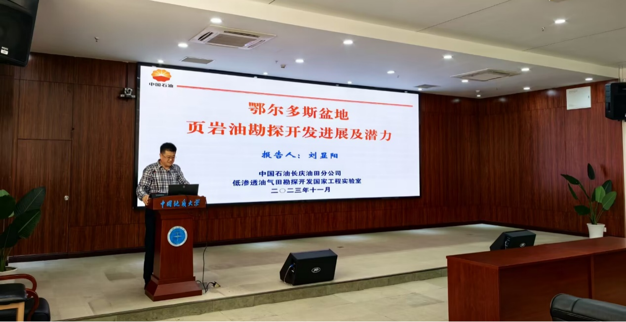石万忠教授邀请,中国石油长庆油田公司首席技术专家、中国地质学会非常规油气地质专委会学术委员刘显阳校友在东区综合楼A708会议室作了题为“鄂尔多斯盆地页岩油勘探开发进展及潜力”的学术报告。