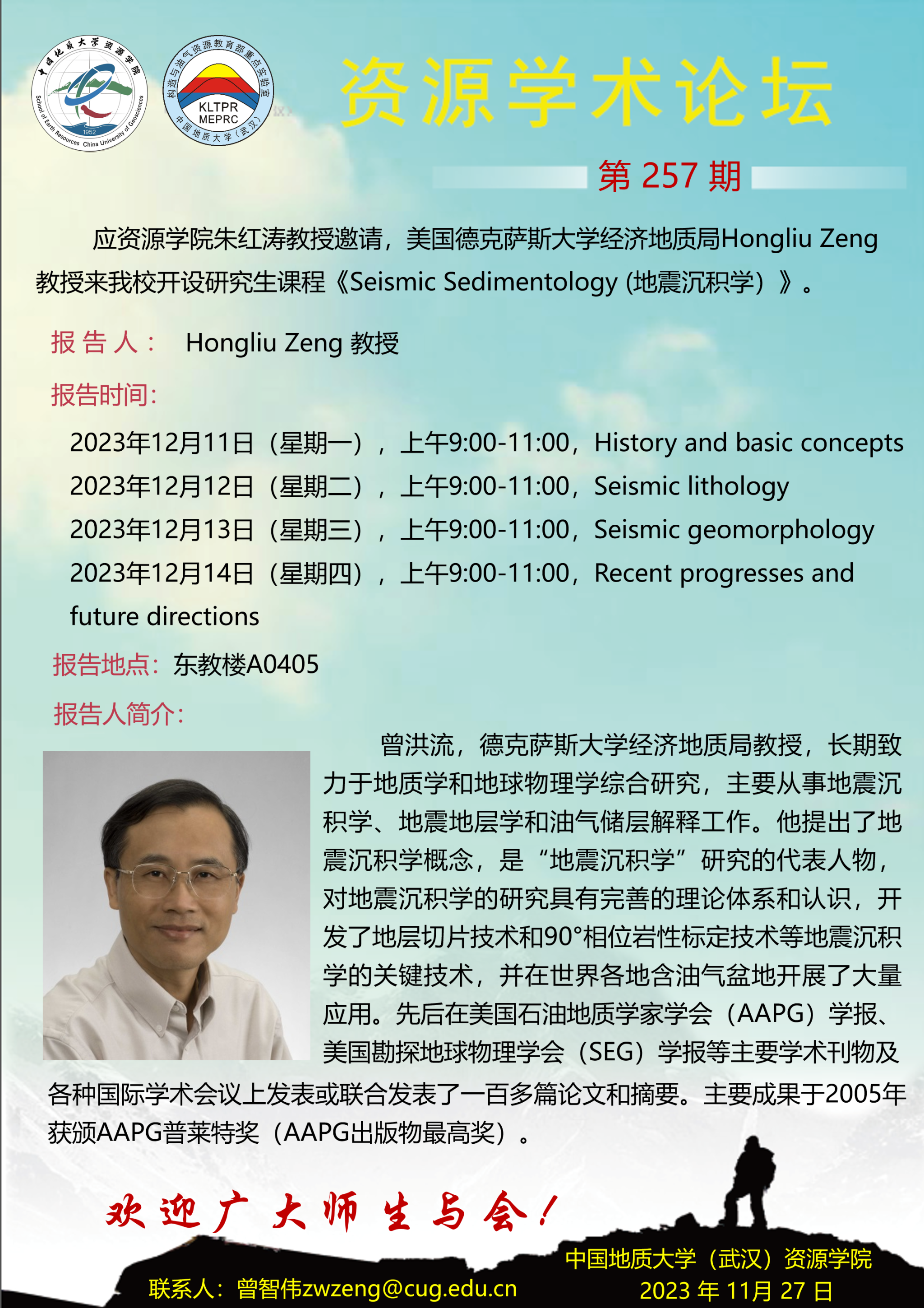 【12月11日-12月14日】第257期资源学术论坛:Hongliu Zeng学术报告