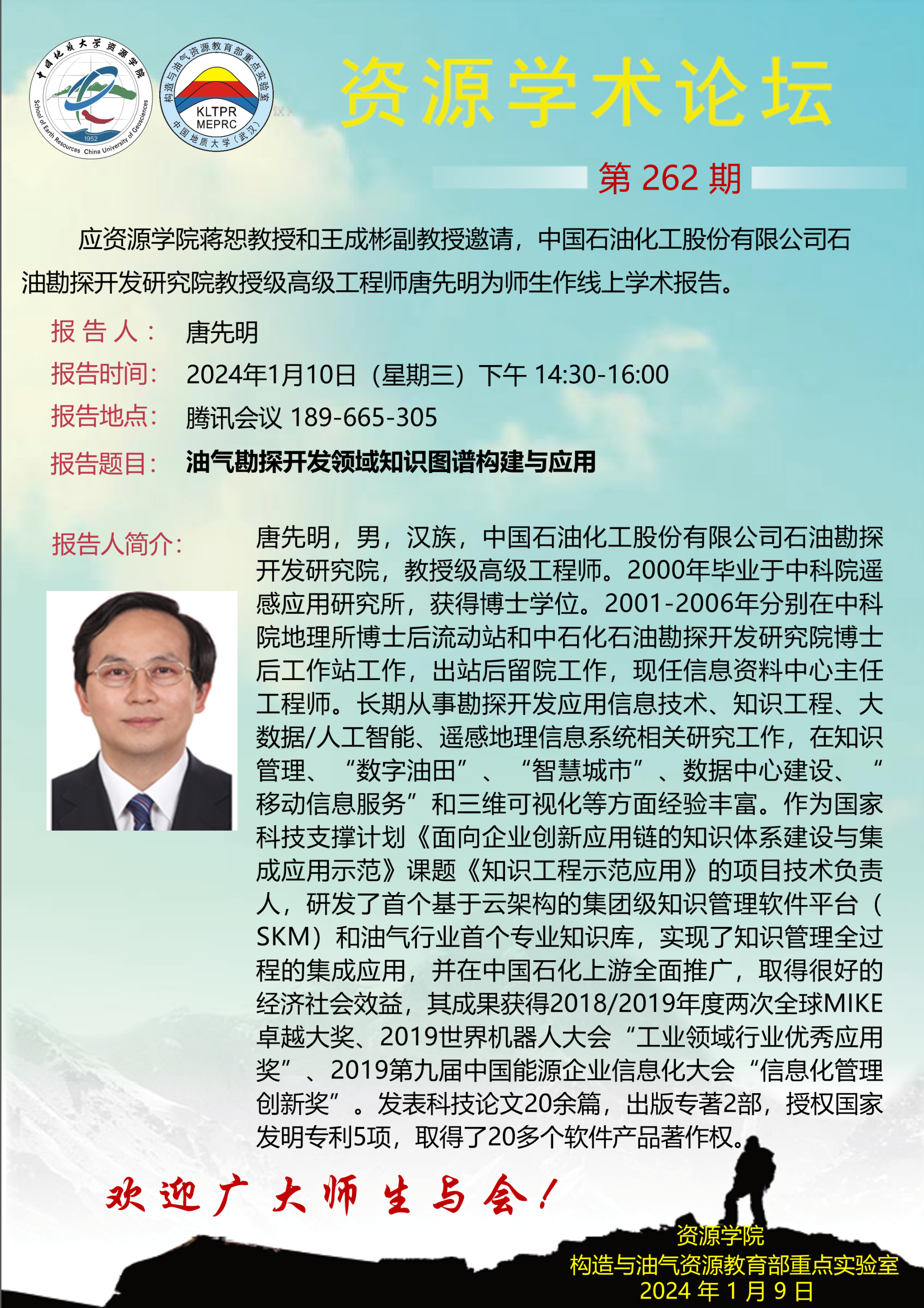【1月10日】第262期资源学术论坛:唐先明学术报告