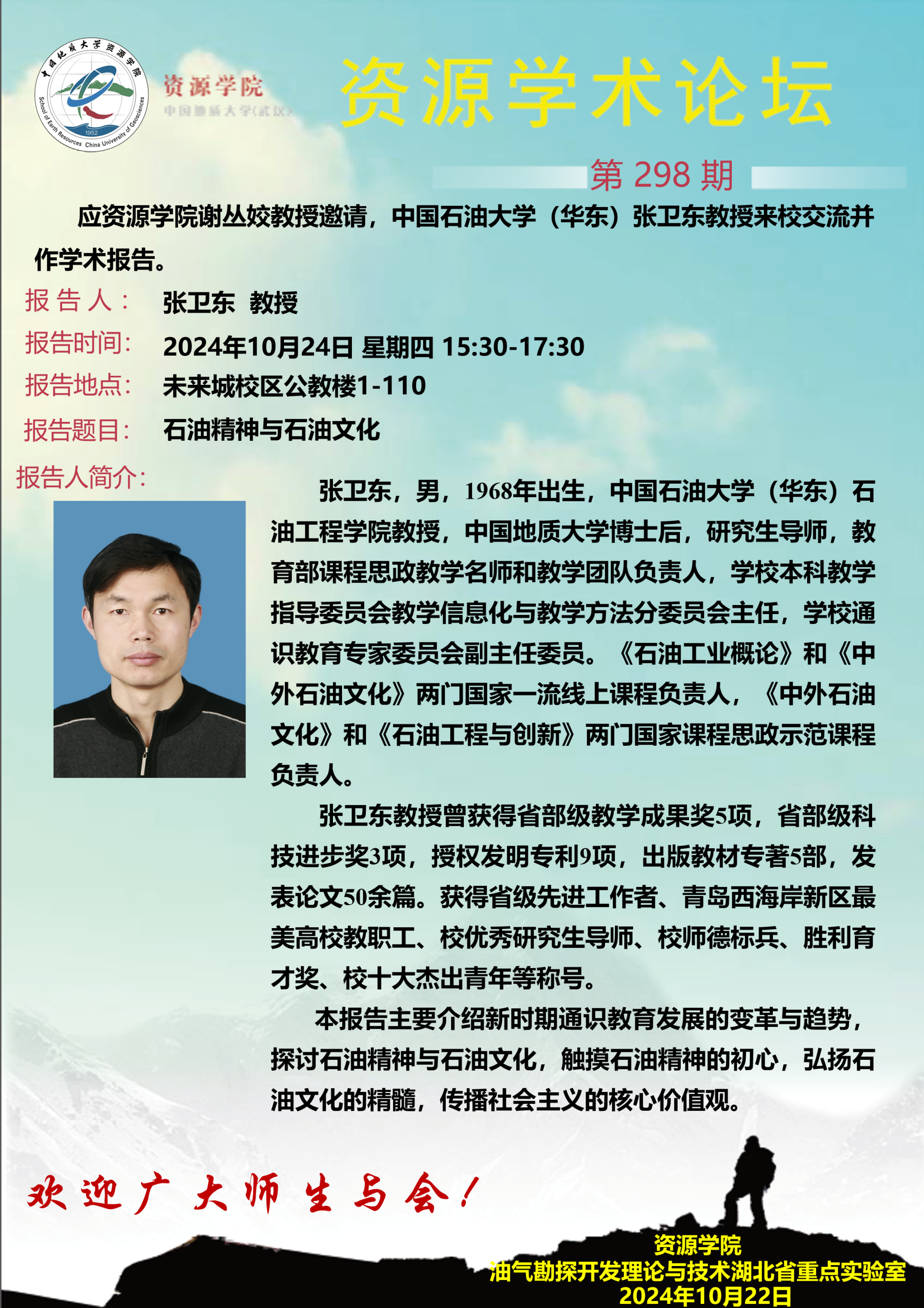 【10月24日】第298期资源学术论坛:张卫东学术报告