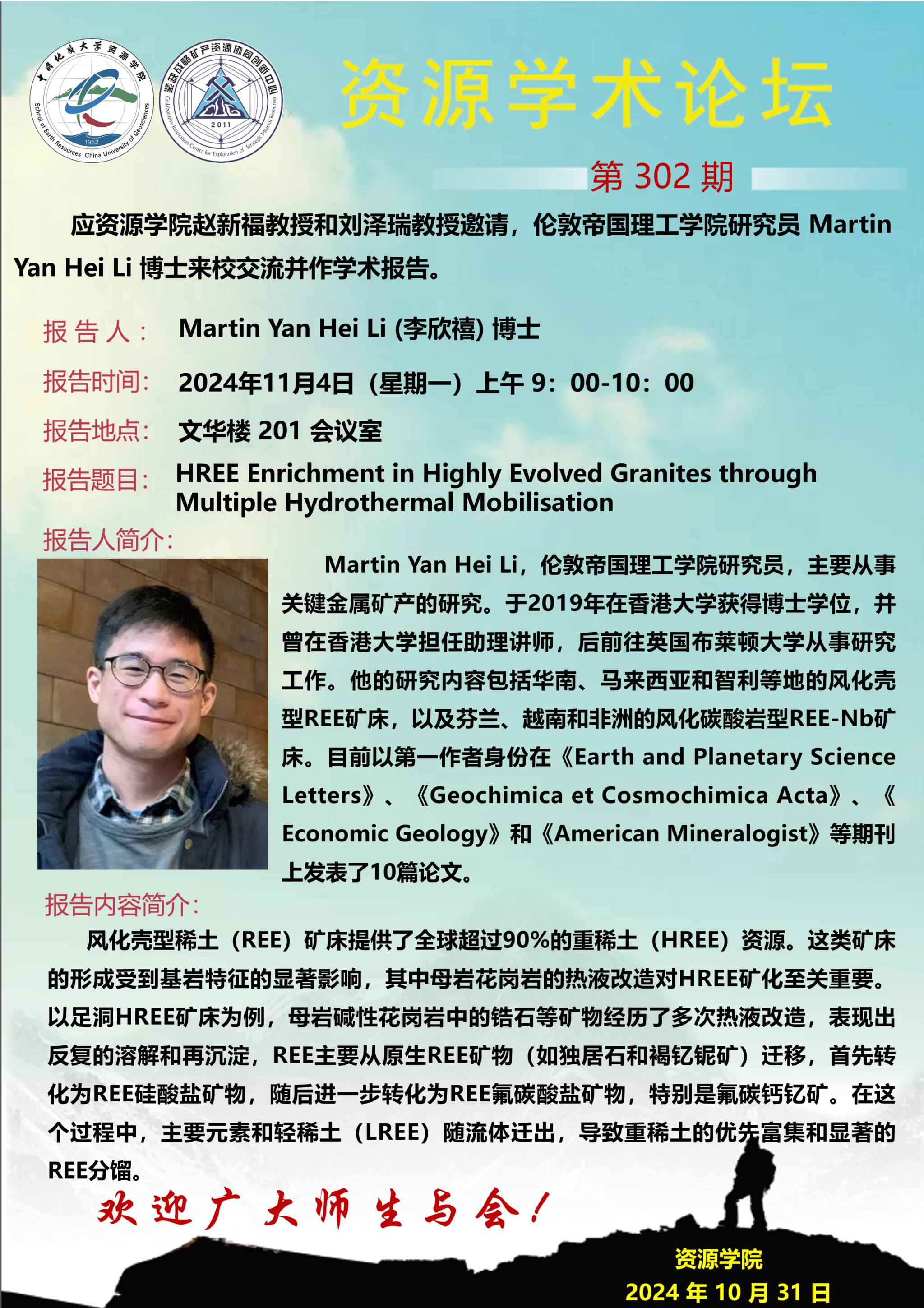 【11月4日】第302期资源学术论坛:Martin Yan Hei Li学术报告