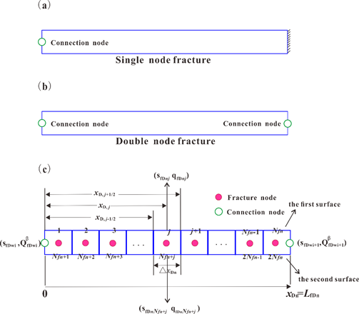 许多裂缝可能存在于碳酸盐岩、页岩、砂砾岩、火山岩和其他坚硬岩层中。裂缝与地层间具有强非均质性,呈现双孔介质特征,精确描述裂缝与基质间的流体交换是认识裂缝导流作用的关键。目前,模拟裂隙性地层内流体流动的主要方法是双孔介质模型结合数值模拟,但是该手段存在如下三方面问题:(1)随着裂缝-地层间非均质性增加,数值模型的计算误差将放大,甚至算法无法收敛;(2)数值方法依靠网格化处理,将产生巨大数据体,计算速度缓慢,且难以刻画复杂形态裂缝形态;(3)双孔介质模型仅限于特征体元(REV)尺度,无法模拟离散性裂缝网络。针对以上科学问题,我校湖北省勘探开发理论与技术重点实验室与威廉希尔 “油气藏渗流力学与数值模拟”团队特任教授王磊及其合作者提出了一种在Laplace空间耦合地层流动和裂缝流动的模型,该模型地层流动采用解析求解,因此在地层中不需要划分复杂的结构及非结构网格就可显示表达裂缝特征,大大节省了计算量,裂缝模型对Fredholm方程进行数值离散,在裂缝壁面通过流量-压力相等条件进行耦合,因此称为半解析模型,对于裂缝交叉点提出了自适应物质平衡方程,因此不需要判断裂缝交叉点流体流动方向,建立一种自动升尺度精确模拟裂缝的方法。该研究系统分析了离散裂缝网络压力动态变化特征,方法的提出为后续离散裂缝储层试井分析及产能评价工作奠定理论基础。