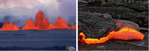 由于岩浆房位于地壳的深部,无法直接观察,研究手段有限,所以人们早期只能通过火山喷发的产物来“一窥”深部岩浆房的“真容”。近距离的观察和研究表明火山喷发的熔岩主要以熔体为主(图1),同时会含有一定量的矿物斑晶和挥发份气体,因此“深部岩浆房主要以熔体为主”成为了人们长期以来的共识。
