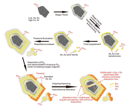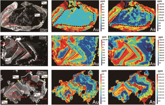 本项研究揭示了浅成低温热液体系中,压力驱动的热液过程在金和其他一些微量元素的原始沉淀和再富集过程中起着至关重要的作用。而细致的岩相学观察结合原位微区测试手段,可以有效识别含金黄铁矿的幕式沉淀以及后期交代和热液蚀变过程,客观、翔实的反演矿床形成历史。