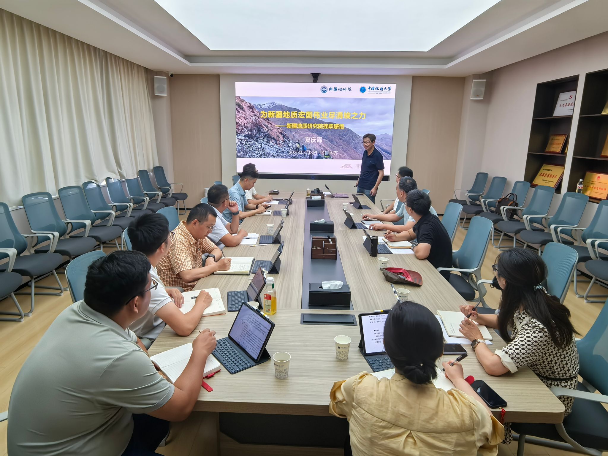 资源信息工程系夏庆霖教授介绍新疆地质研究院挂职经历,围绕挂职期间工作内容、工作特点及成效、个人感悟等方面作了详细分享,并结合威廉希尔