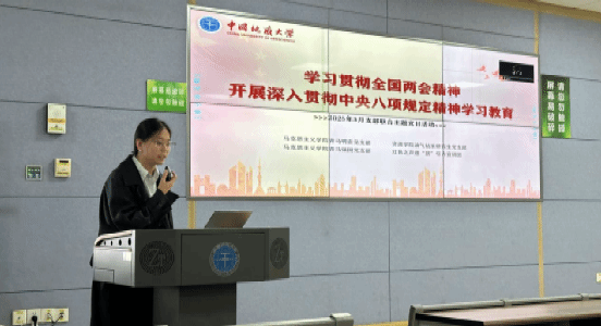 油气钻采研究生党支部及红色之声递“薪”引力宣讲团齐聚中国地质大学(武汉)C106教室,以“学习贯彻全国两会精神、开展深入贯彻中央八项规定精神学习教育”为主题,开展联合主题党日活动。活动通过重温入党誓词、学习重要精神、聆听登山故事等形式,将红色基因与科学家精神深度融合,为全体党员上了一堂生动的思想教育课。