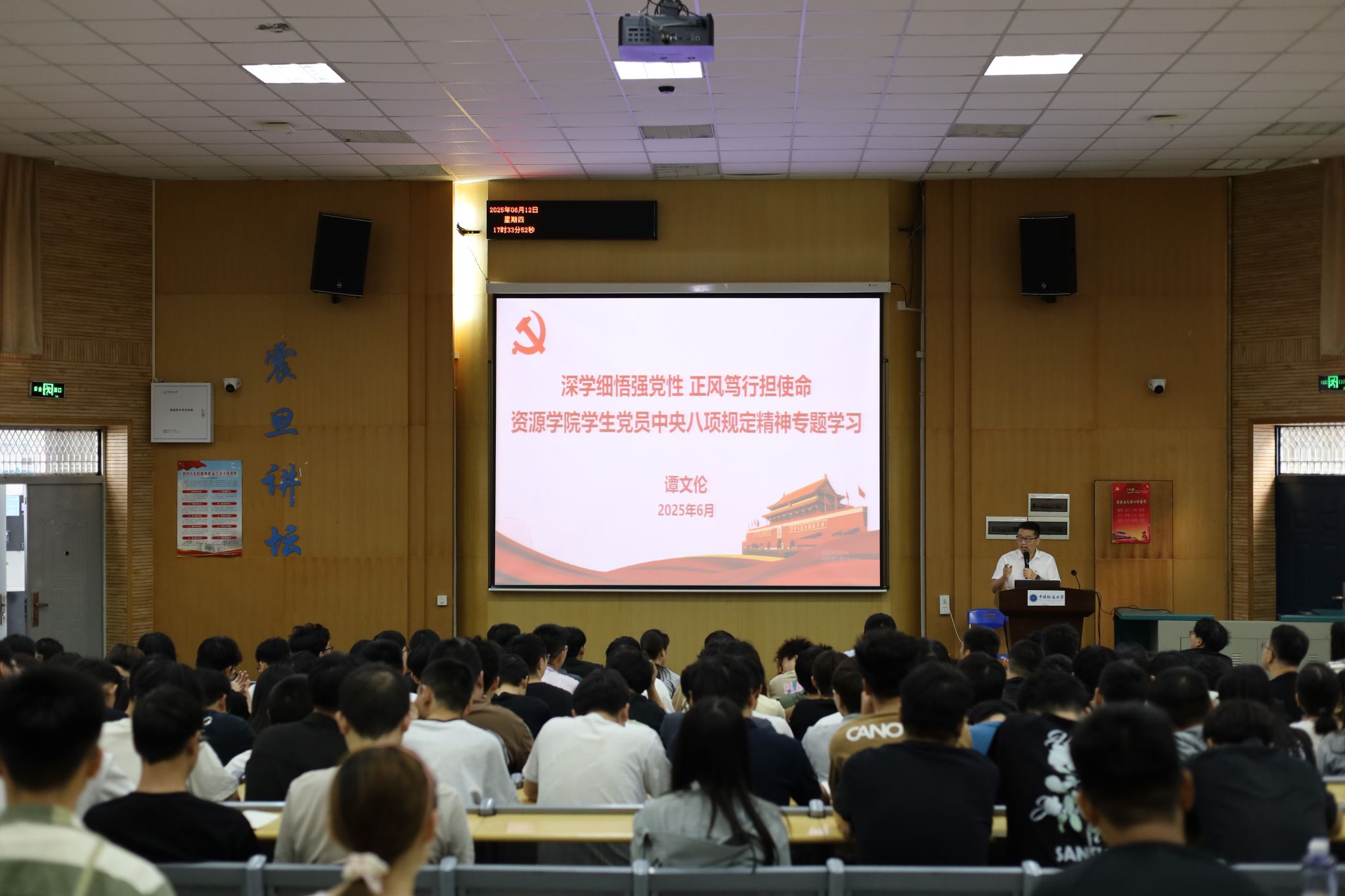 谭文伦以“深学细悟强党性 正风笃行担使命”为题作主旨讲话,他结合党员集中大课学习心得、近期培训学习习近平总书记重要讲话精神体会和与行业单位人事主管、校友的交流感受对全体学生党员提出三点要求:一是要加强理论学习,深学细悟党的创新理论,筑牢思想根基,将崇高的理想信念内化为报国之志和强国之能,外化为在学习、科研、服务中的执着坚守与无私奉献;二是要强化党性修养,将纪律意识融入日常,勇于自我革命,严于修身律己,在自我修炼、自我约束、自我革命中自省、自律和自强;三是要锤炼过硬作风,在专业学习上要勤奋刻苦、追求卓越,在科研探索中要求实进取,勇于创新,在日常生活中以身作则、厉行节俭,践行“平常时候看得出来”“关键时候顶得上去”的先锋承诺与责任担当。