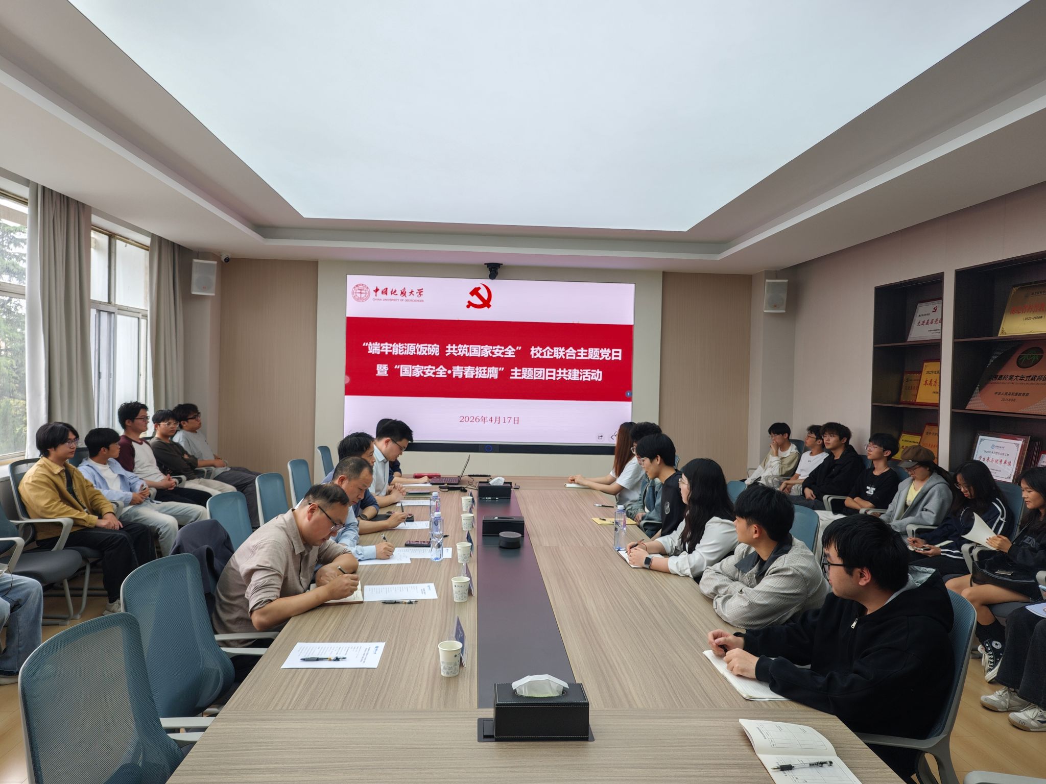 在主楼330会议室举行“端牢能源饭碗 共筑国家安全”校企联合主题党日暨“国家安全·青春挺膺”主题团日共建活动。中国石化胜利油田勘探开发研究院首席专家曾治平、勘探战略室党支部书记李松涛,威廉希尔