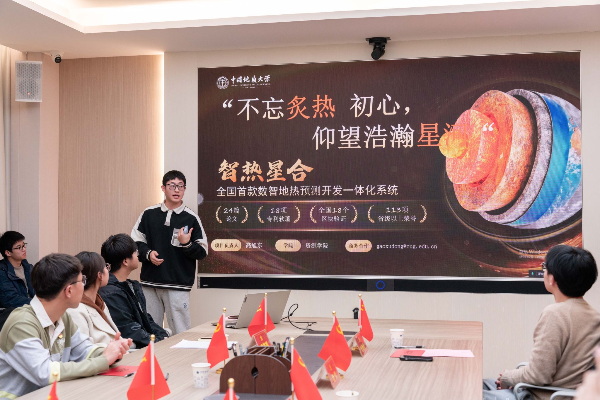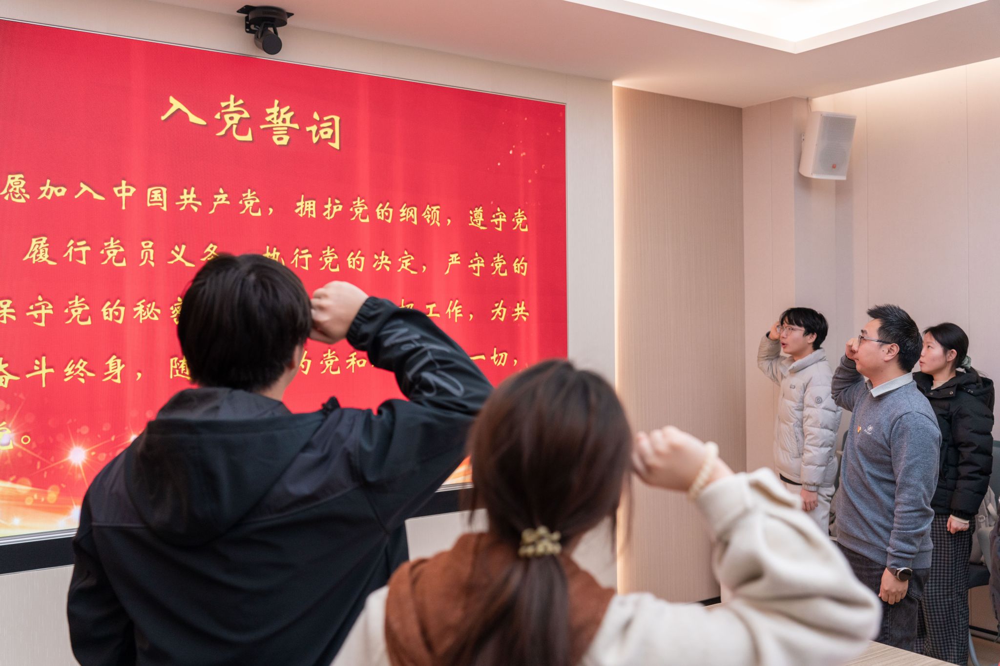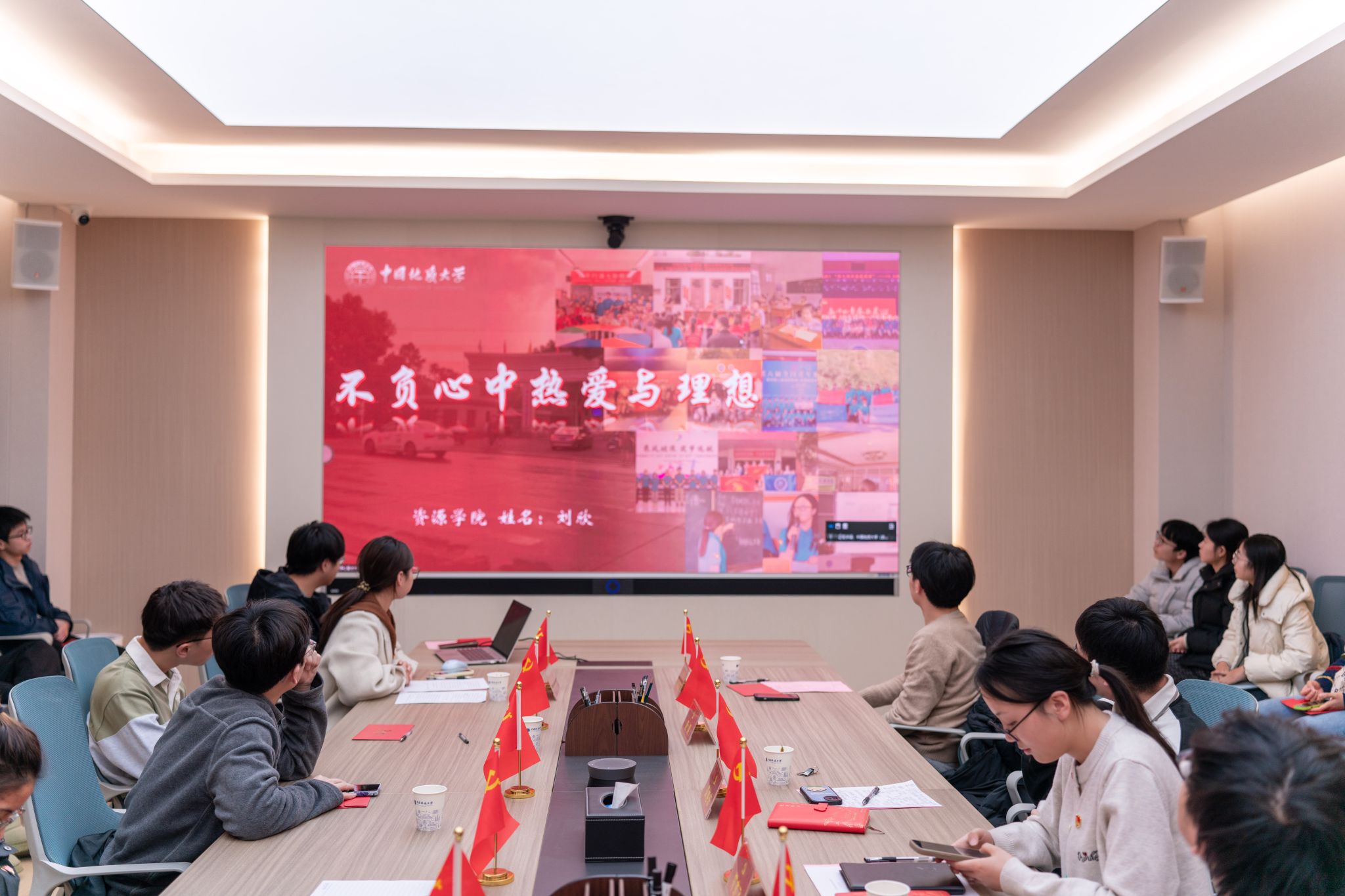 在新党员代表发言环节,陈嘉好、唐果、朱锦豪做主题发言,何韵冰、邹鑫鑫、热孜万古丽·阿不都克热木做交流发言。他们结合“党员身份带来的改变”讲述了大学生活中的学思践悟,并一致表示,要牢记初心使命,发挥先锋作用,坚定专业报国信念,肩负起为国家能源资源安全贡献青春力量的责任和使命。
