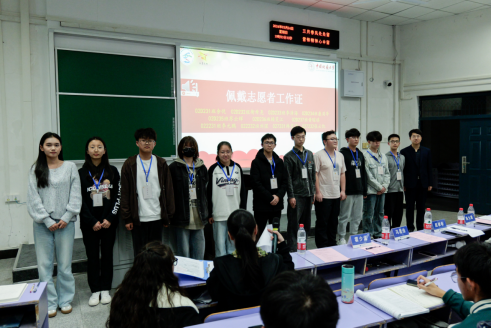 志愿服务工作基本情况,到场老师为各班级志协理事佩戴工作证,全体新注册志愿者集中宣誓。