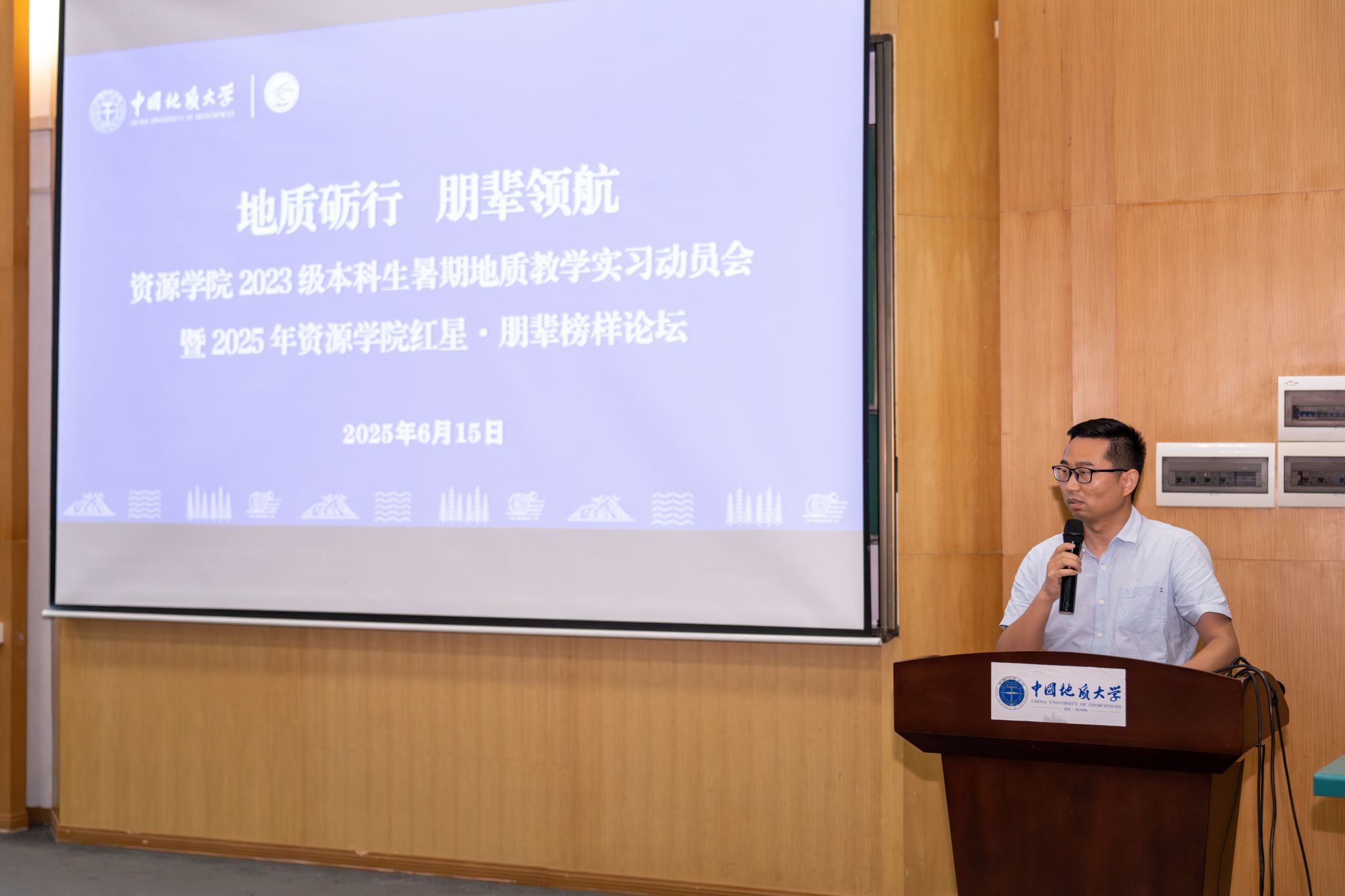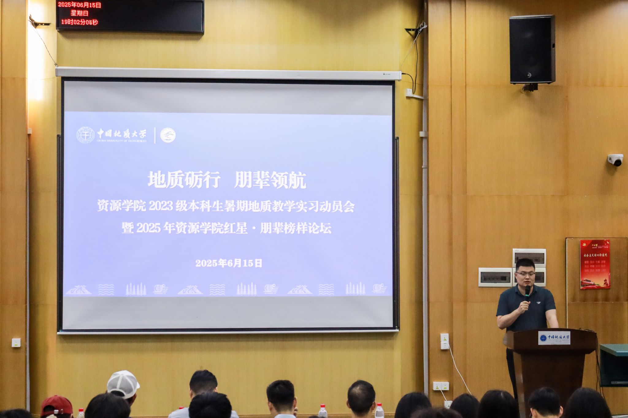 (通讯 席伟琦 彭鑫 摄影 陈思程 范汤豪)6月15日,威廉希尔 2023级本科生暑期地质教学实习动员会暨2025年红星·朋辈榜样论坛在教三楼109举行,威廉希尔 党委副书记谭文伦,副院长李占轲,周口店实习站队长魏启荣,秭归实习站队长李嘉光,辅导员彭鑫,2024届本科毕业生马玮、刘欣、刘子萍,2025届学生会执行主席余慧和2023级全体本科生参加会议。会议由辅导员彭鑫主持。