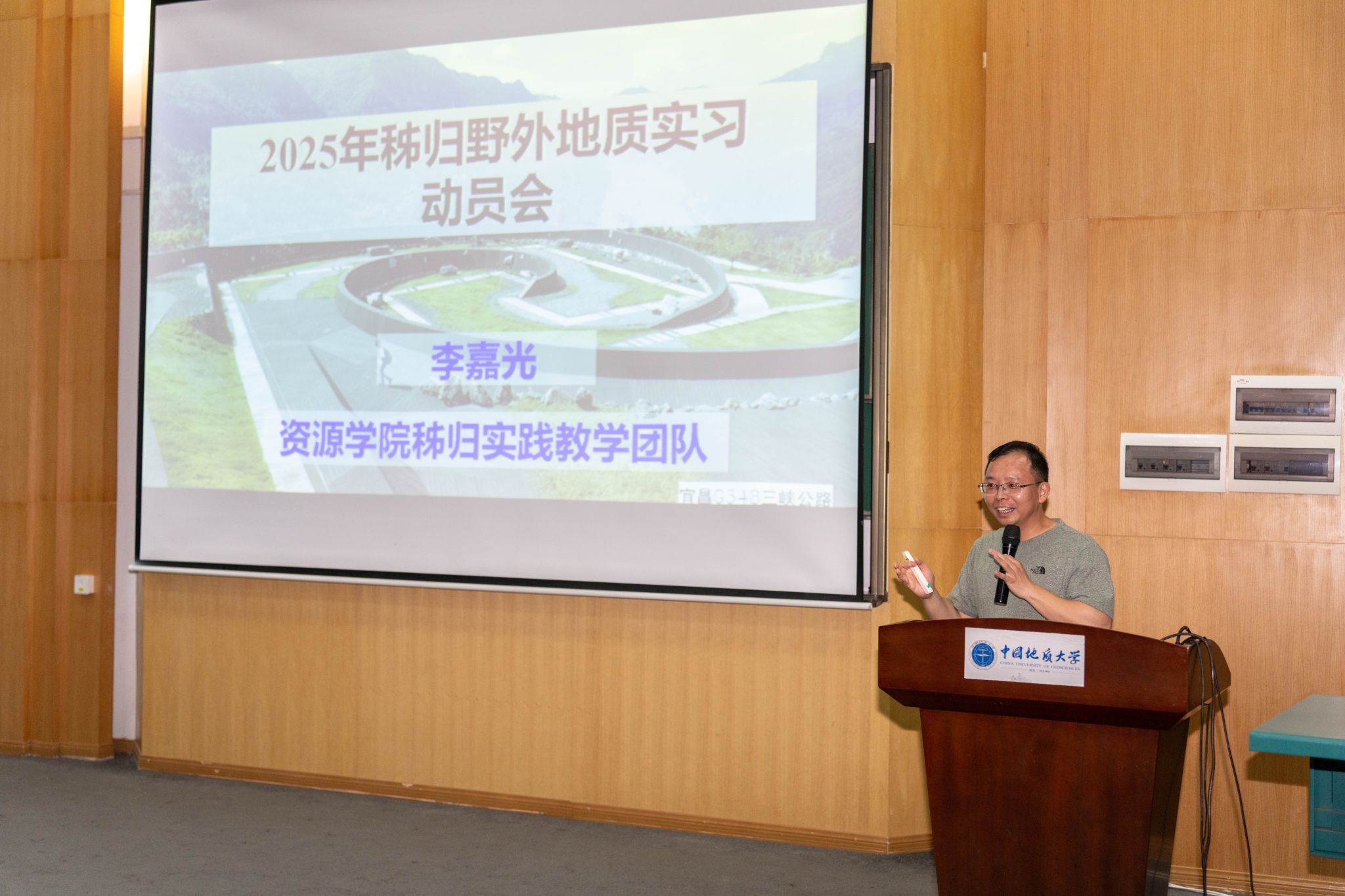 魏启荣和李嘉光分别从实习目的与意义、实习站建设、实习路线安排、实习前期准备和注意事项等方面介绍周口店和秭归实习基地基本情况,提醒同学们做好实习前的专业知识和实习用品准备,并着重强调了实习安全和野外实习对于学生掌握地质基本技能、锤炼吃苦品质和塑造团队精神的重要意义。