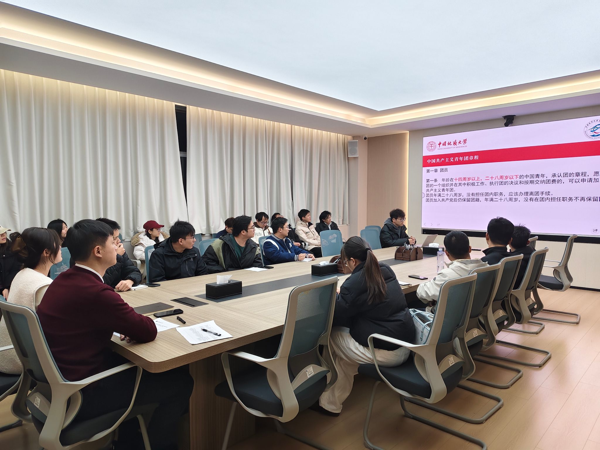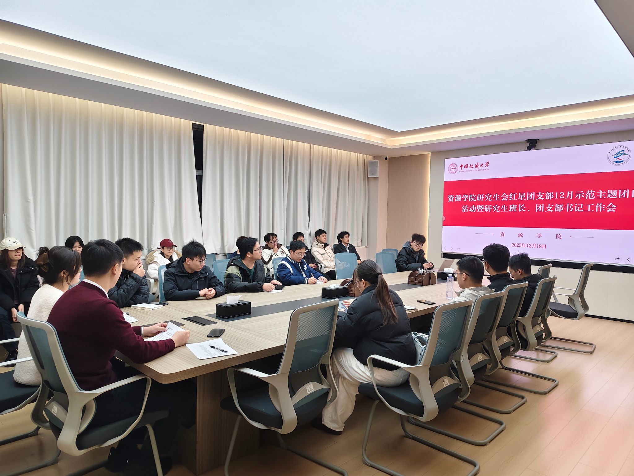 团委书记刘睿,辅导员林心悦,兼职辅导员杨玉娥、裴秀璟,研究生会红星团支部成员,全体研究生班长、团支部书记参加会议。会议由刘睿主持。