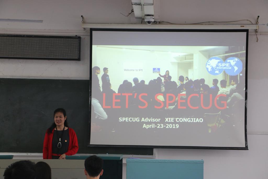 随后谢丛姣为我们讲述了她与SPE的故事。为大家详细介绍了SPE地大学生分会的发展历程、学术交流活动和取得的成绩,鼓励大家加入协会,了解行业前沿动态。同时,谢老师向大家介绍了石油工程行业的诸多国家级、省级赛事,引导大家关注学术竞赛,参与学术竞赛,以赛促学,以赛促研,鼓励大家追求卓越,勇攀高峰!