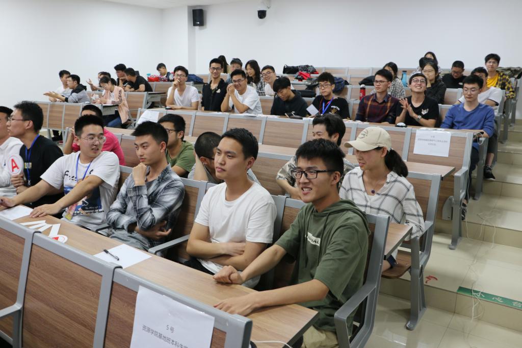 七时十分,活动正式开始。主持人罗志翔、朱新千致开场辞。主持人简要介绍了到场嘉宾以及比赛规则,本次竞赛分为必答题、抢答题、风险题、趣味题四个环节。此外,还设置了电话抢答、你来描述我来猜两个互动环节。必答题环节,八支队伍同台竞技,势均力敌,均取得了不错的成绩。第二环节是抢答题,最先按下抢答器的队伍获得答题权,这一环节考验的不仅仅是对党团知识的掌握,还需要一定的运气和手速。有的队伍多次成功抢答,有的队伍却一次都没有抢到,只能看在眼里,急在心上。经过两个环节的激烈角逐,各支队伍逐渐拉开了差距,比赛逐步变得白热化。接下来的风险题环节中,答对则得到相应分数,答错则扣除相应分数,题目和分值的选择,都是队伍之间斗智斗勇的战场。最后一个环节的趣味题是争夺排名的最后机会,现场气氛走向高潮。每支参赛队伍选择两名成员,在规定时间内,根据PPT显示的词条,一名成员描述,一名成员猜。可见,这十分考验两人的默契。教室里掌声、欢呼声阵阵响起,互动踊跃,把竞赛一步步推向高潮。随着趣味题环节的结束,决赛的所有环节均已全部完成。