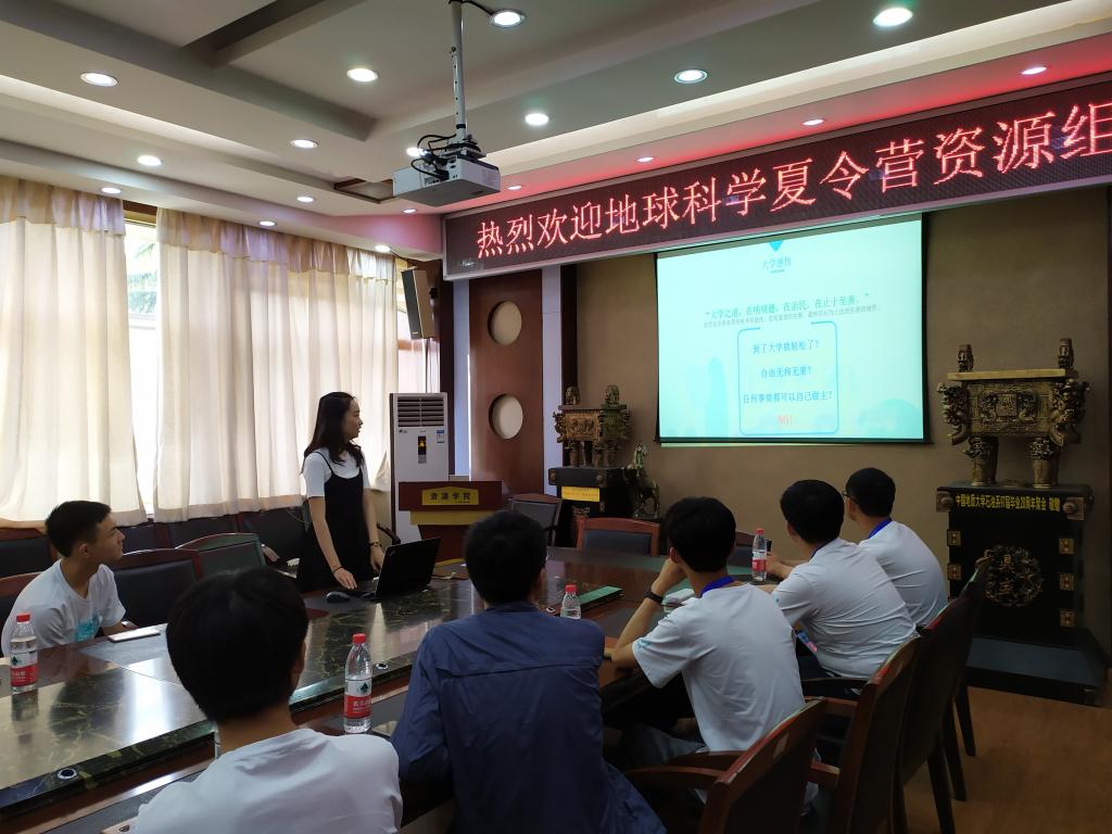 周江羽教授为营员做了专题报告,详细介绍了威廉希尔 的历史、现状、发展、学科特色、课堂教学、野外实践、课外活动等,激发了营员们对矿产资源和能源资源的学习兴趣。