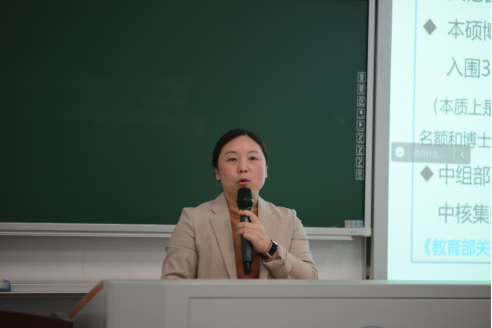 学位点建设和硕士研究生招录政策程序,并就近几年招录情况、专业报考选择、本硕博联合培养等作了介绍。