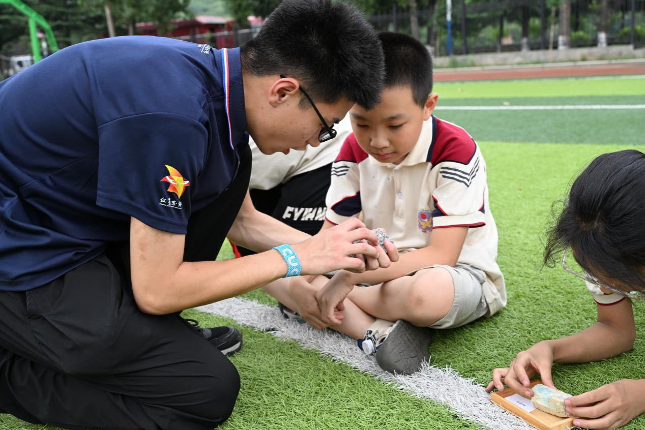 实践团成员李爱霞介绍课程情况并交流发言。她提到,实践团聚焦“益智实践”和“梦想启航”两大主题,多次集体备课研讨,精心打造11节“梦想课程”和9节“实践体验课程”,并在去年暑期支教的基础上用心雕琢,不断提升系列专项知识小讲堂教学质量。她表示,支教不仅是一次行动,更是一份责任和承诺,她将珍惜此次机会,怀着感恩,扛着责任,将梦想的种子播撒在孩子心中。