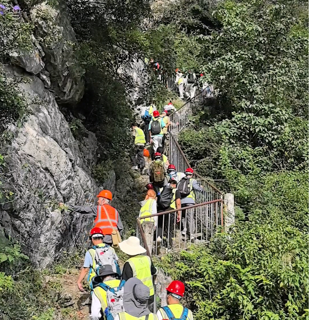 2022级学生在秭归茅垭村开展地质实习。秭归实践教学团队学术指导刘晓峰老师随队在茅垭村路线中触景有感,即兴吟诵两句七言诗:路线飘在白云间,原来你我是神仙。这两句简短却意境深远的诗句一经转发至实习班级群,便立即引发了同学们的热烈反响和积极参与。在接下来的50分钟里,班上30位同学纷纷作诗对句,将自己对地质实习的感受和对自然之美的感悟融入其中。“手握罗盘测山川,立志为国寻矿产”“携手踏勘长江边,足下山河任我攀”“山水为伴心自远,地质情怀满襟间” “地壳变迁岁月长,岩层叠嶂见沧桑” “芝茅橘柚绿连天,盘山而上百万年” “金钉一落乾坤定,星移物转化心间”等等。同学们以诗传情,以地质为语,不仅展现了地质科学的严谨与浪漫,表达了学生们对地质学科的热爱,更传递了地质人勇于探索、不懈追求的精神风貌,增强了大家作为新时代地质人的身份认同感和使命感。