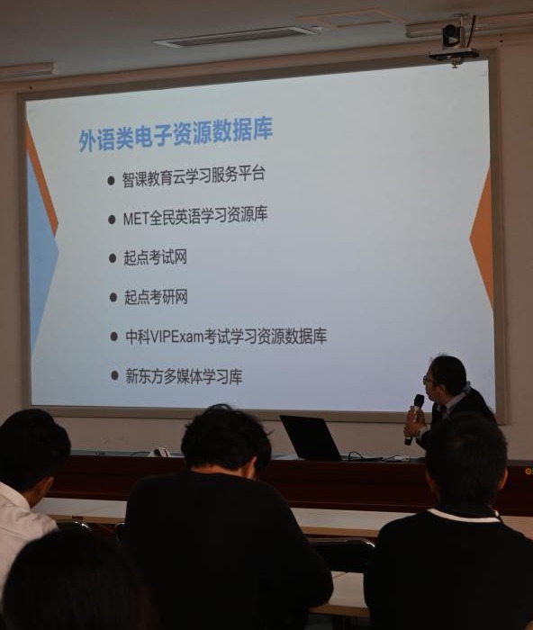 梁胜男老师为大家详细介绍了图书馆购买的中科VIPExam考试学习资料数据库、起点考研网、MET全民英语学习资源库等英语类电子资源的功能以及使用方法。梁老师指出,这些数据库内容丰富,不仅包含了大学生英语四六级、雅思、托福等英语学习资料,还包含了考公、考研、计算机考试等多个领域的学习资源,这不仅可以帮助到正在进行四六级英语考试备考的同学,还为考公、考研的同学提供了寻找辅导资料的新思路。