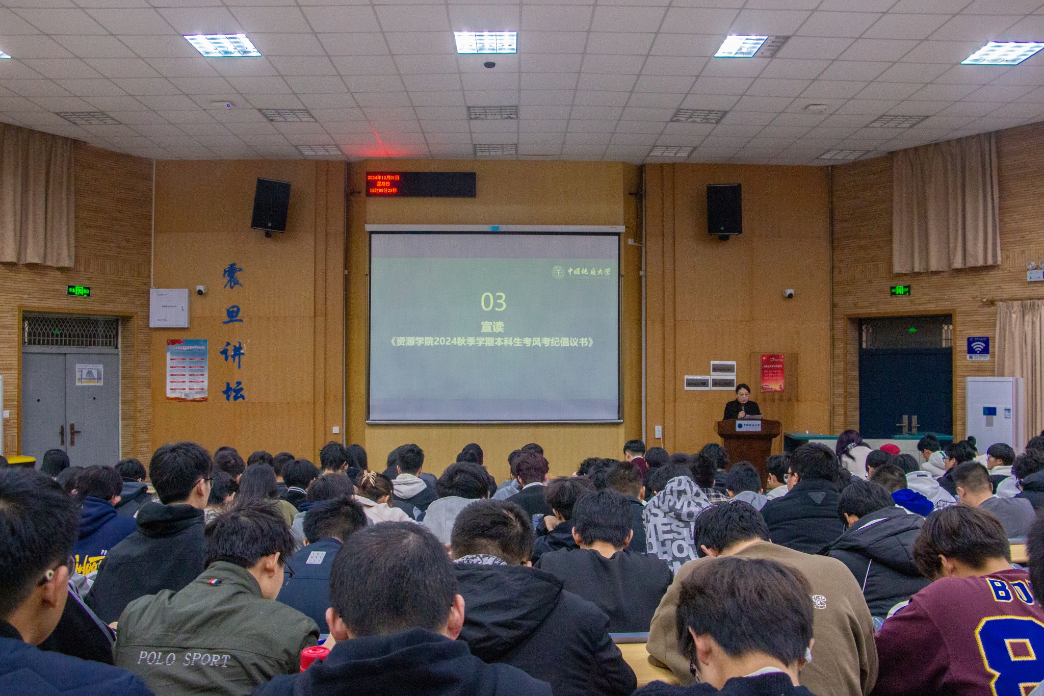 学风逐渐向好、学生学业基础不断厚实,资源学子在学生科研立项、学生科创赛事等方面都取得了良好的进展。他强调,全体同学要遵守《学生手册》的规定,严肃考风考纪,严格杜绝考试作弊等行为。他希望,全体同学扎实开展期末复习备考,在考试中取得优异成绩。