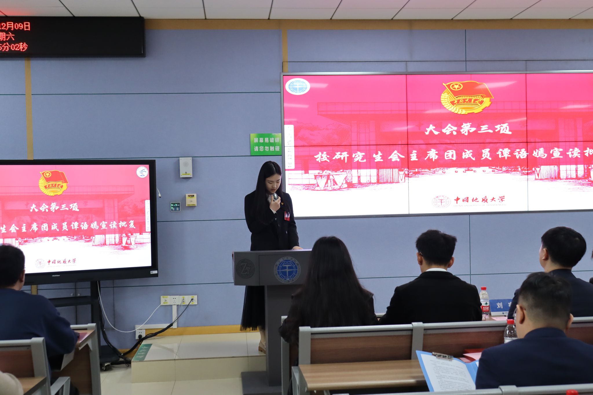 谭语嫣宣读《关于同意召开中国地质大学(武汉)威廉希尔 第十二次研究生代表大会的批复》。