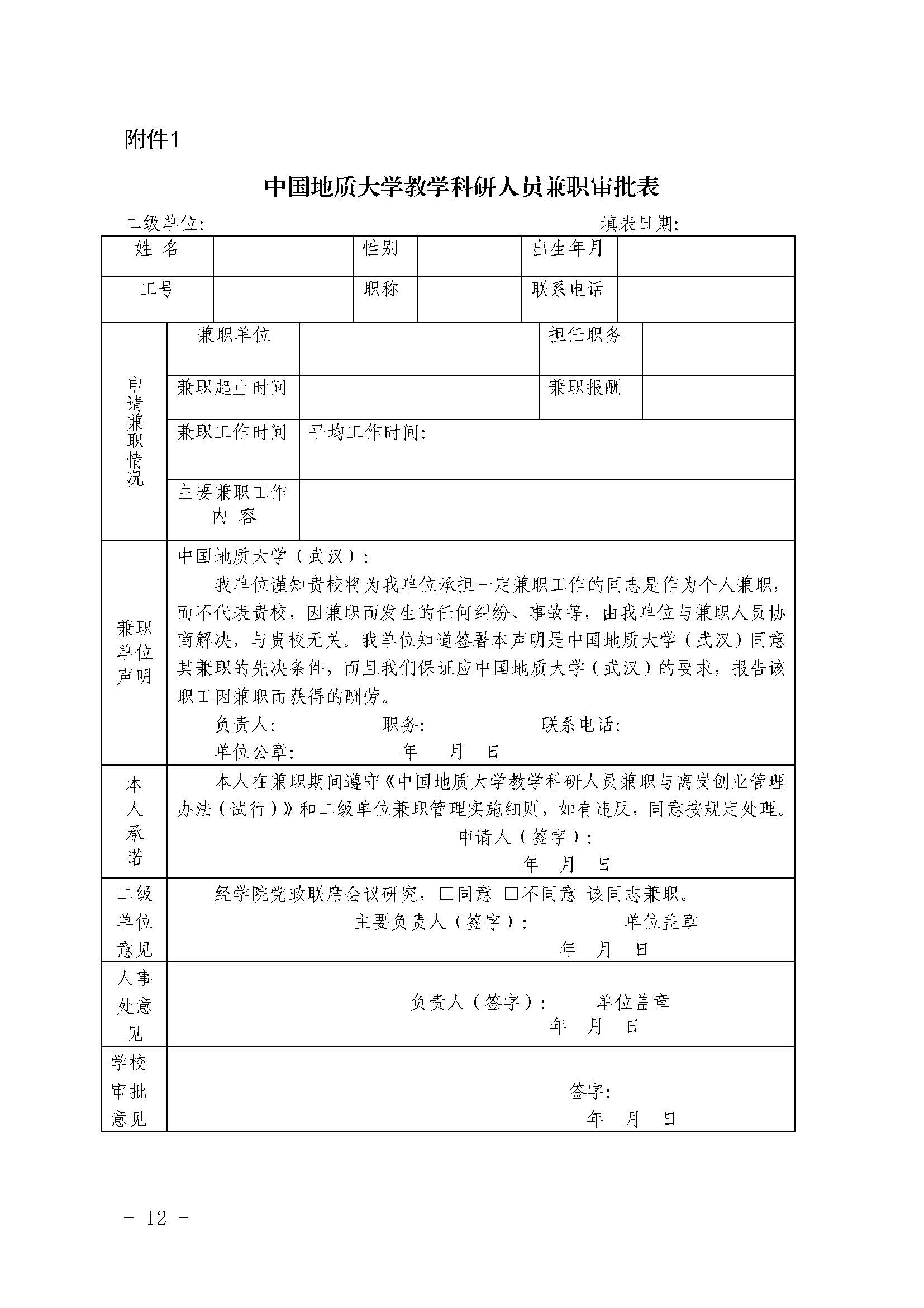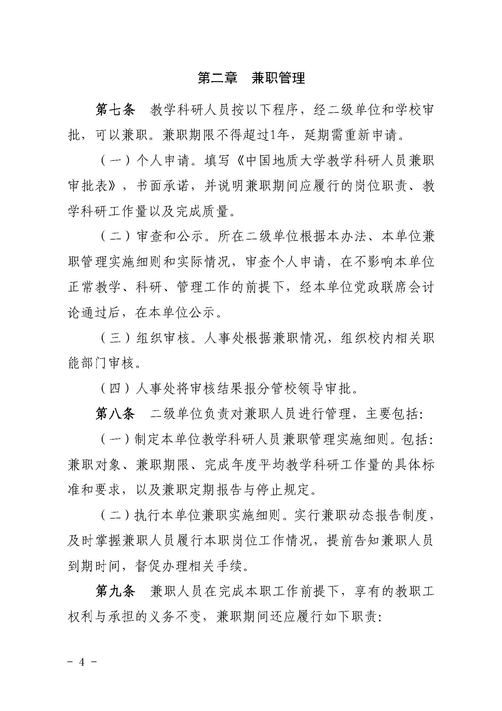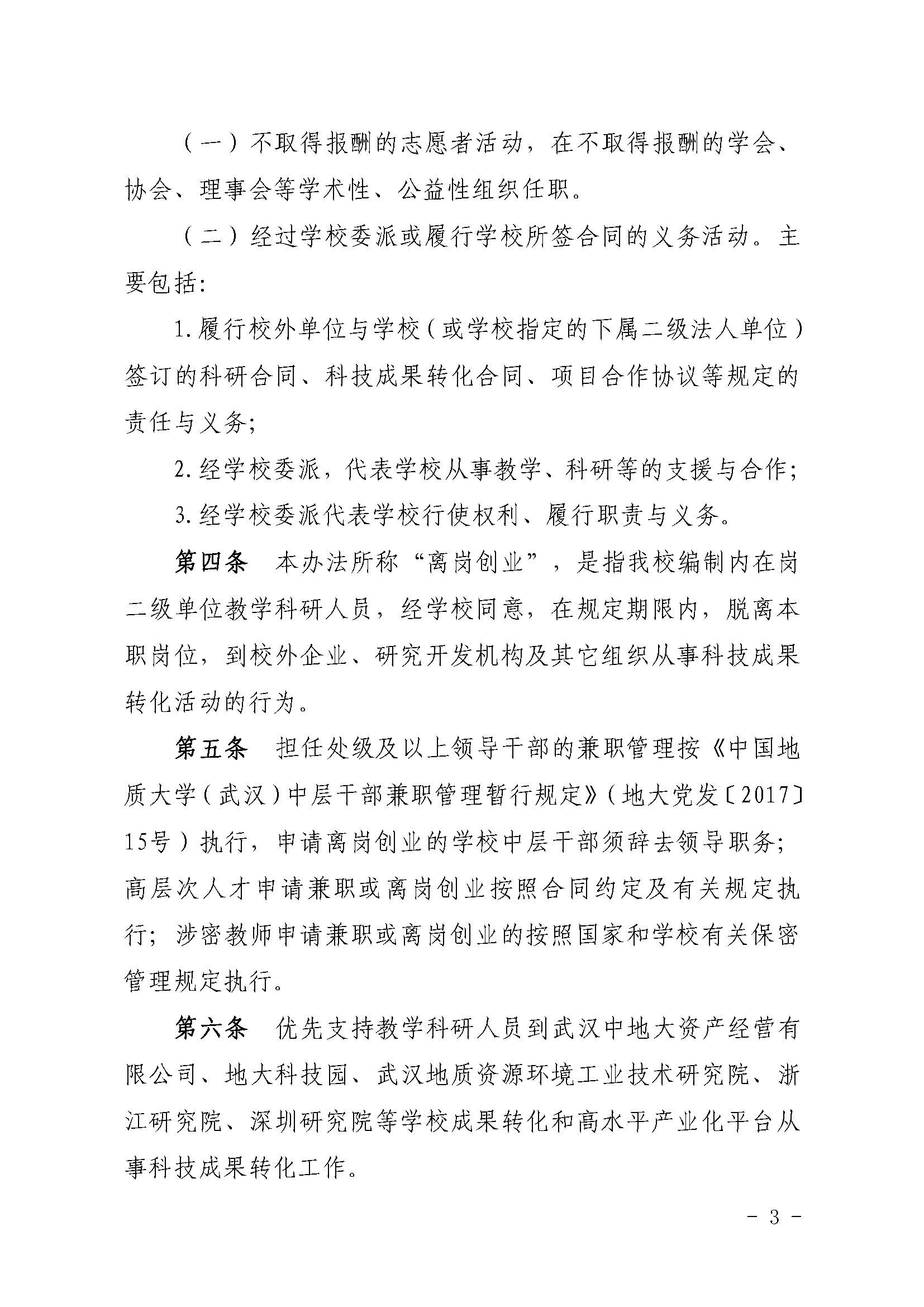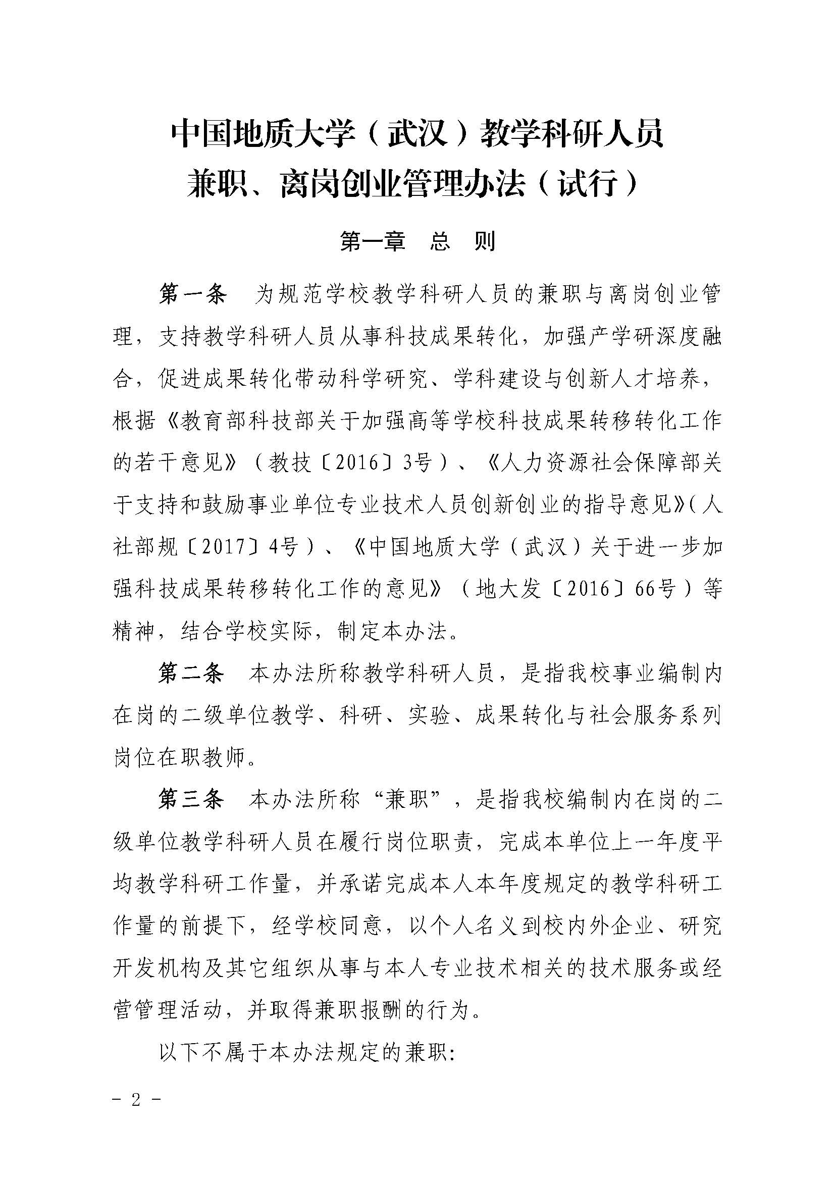 中国地质大学(武汉)教学科研人员兼职、离岗创业管理办法(试行)
