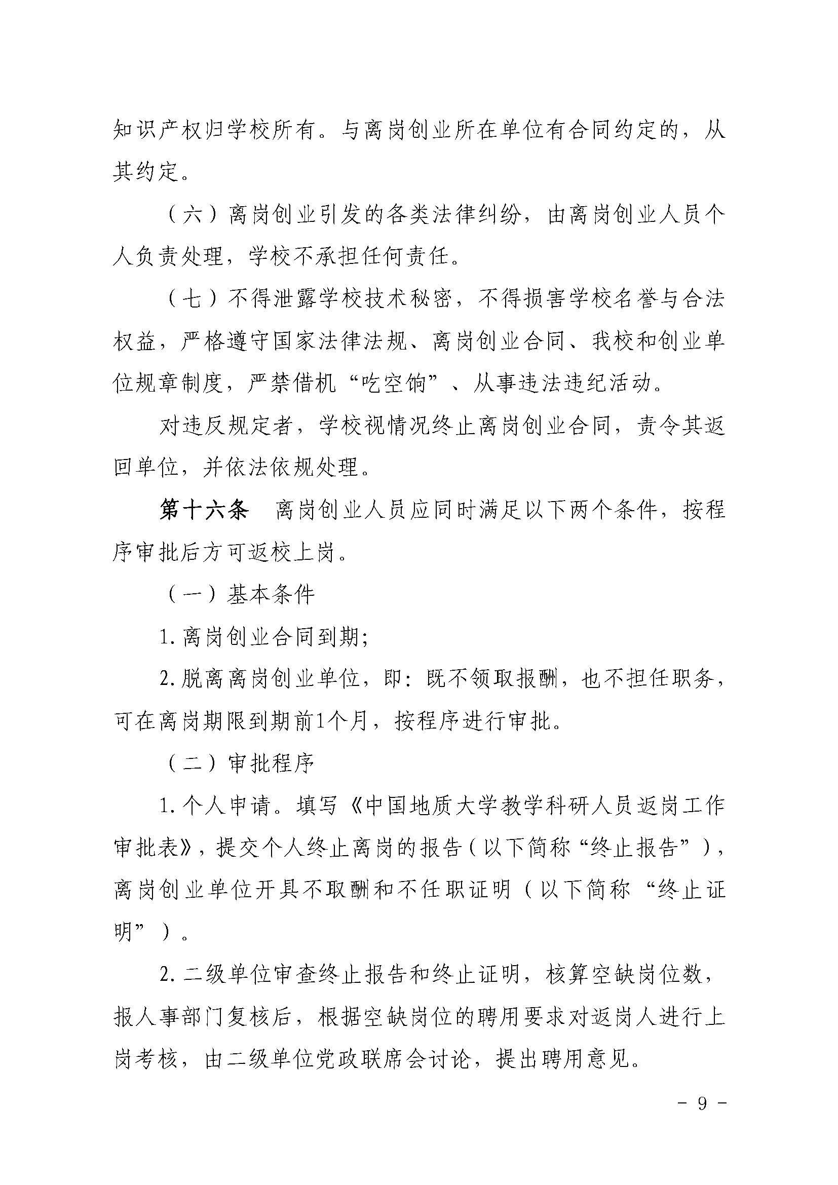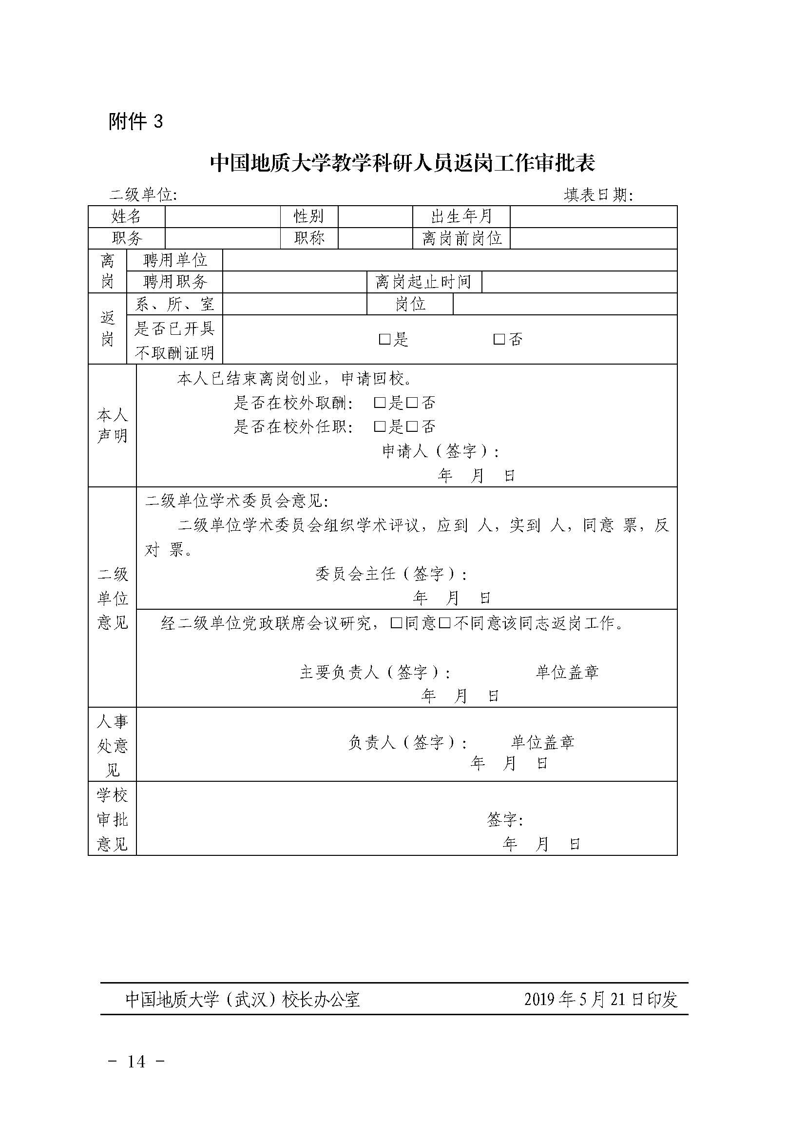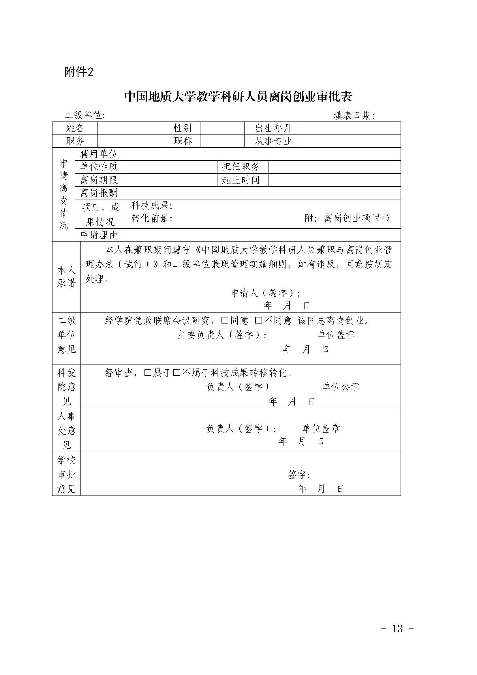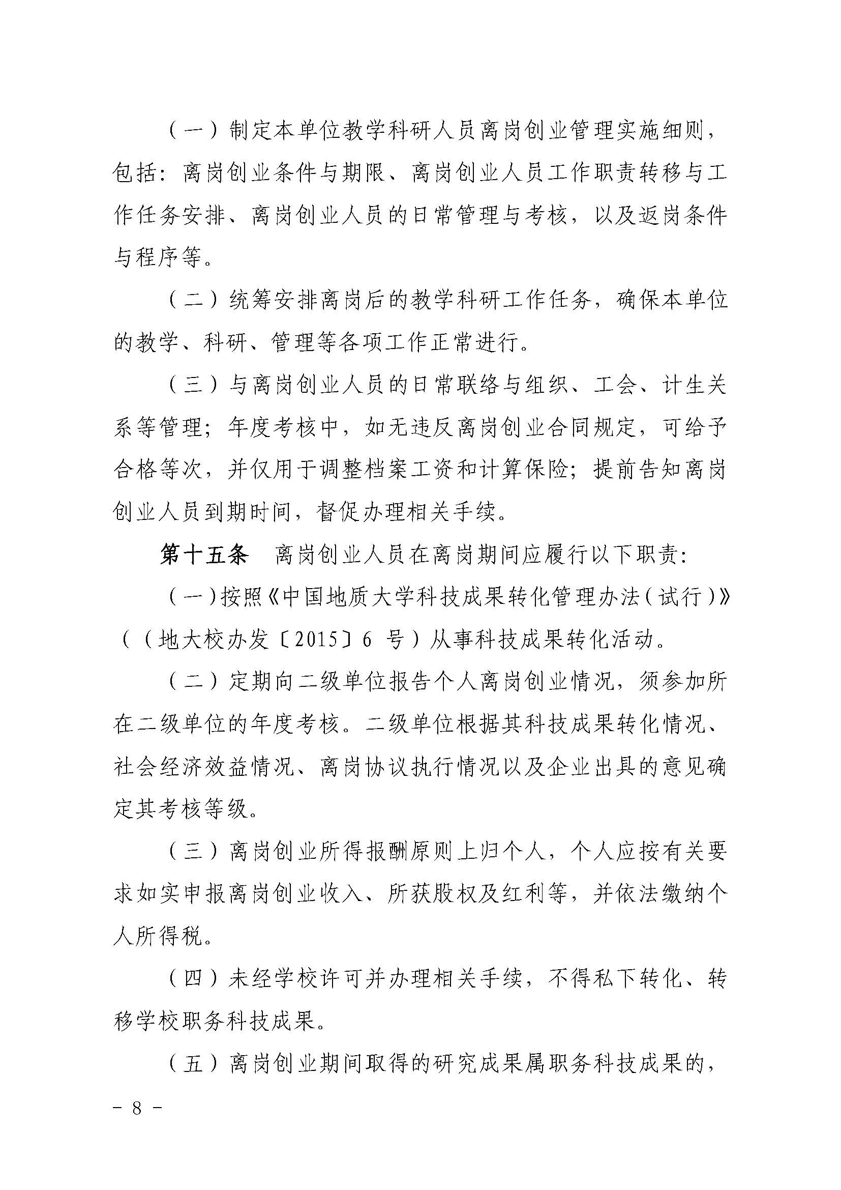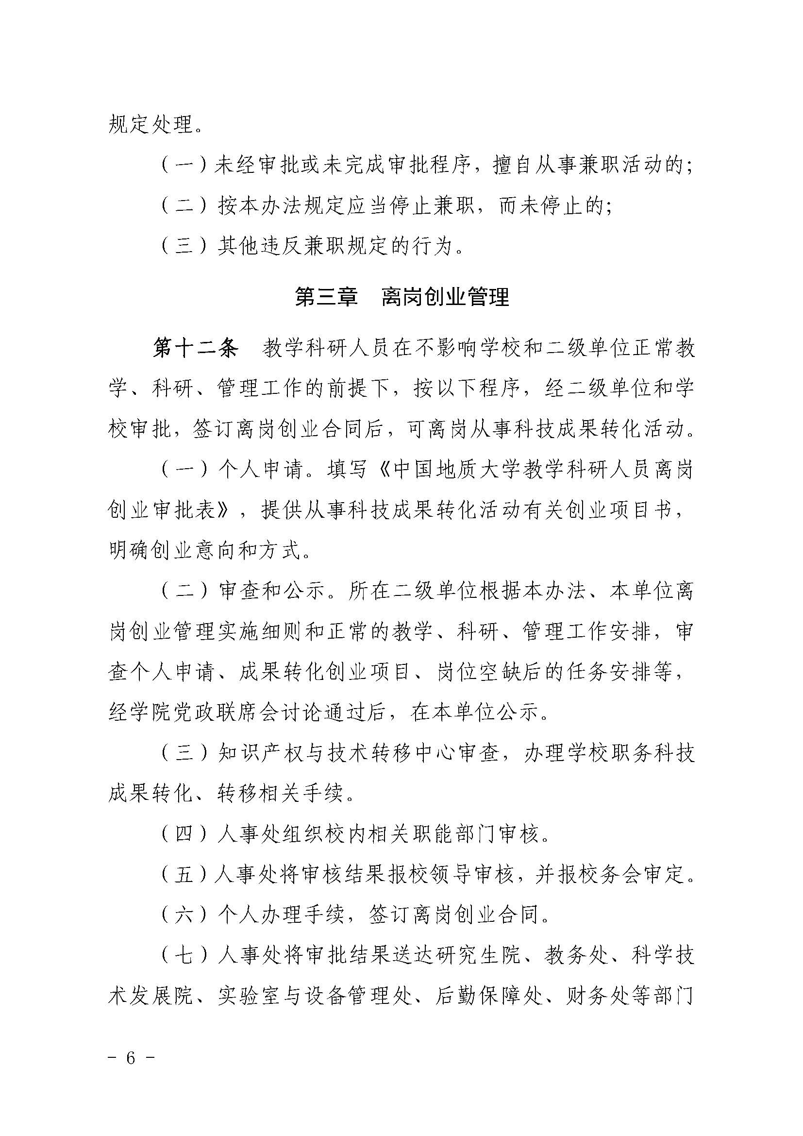 中国地质大学(武汉)教学科研人员兼职、离岗创业管理办法(试行)