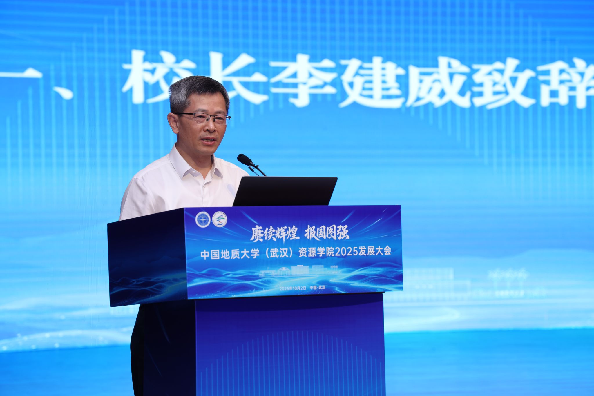 中国地质大学(武汉)校长李建威致辞。他回顾了威廉希尔