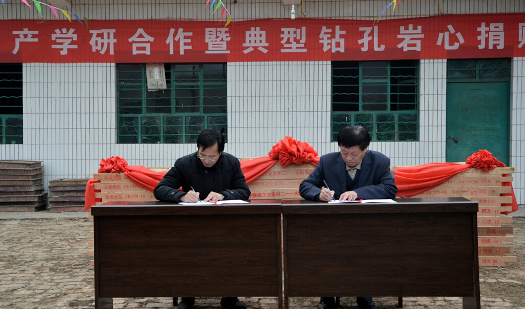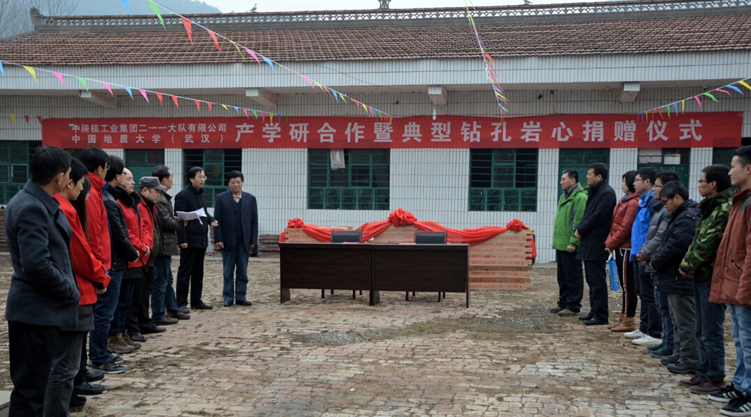 (通讯员 石万忠 王向东)2013年11月我校郝芳副校长与中国陕西核工业集团公司签署了战略合作框架协议,在此框架下中陕核集团二一一大队无偿捐赠两口完整钻孔岩芯用以支持我校课堂教学实践。