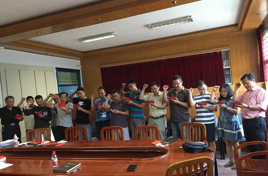 按照主题党日活动的要求,全体与会党员共唱国歌,并在孙华山同志领誓下重温了入党誓词,诵读党章,随后集体学习中组部《关于中国共产党党费收缴、使用和管理的规定》,并传达学校、威廉希尔
