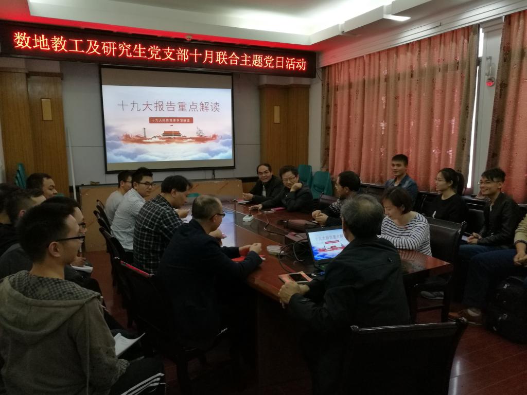 数地所教工党支部及研究生党支部在主楼527召开全体党员大会,主题为“深入学习十九大报告”。