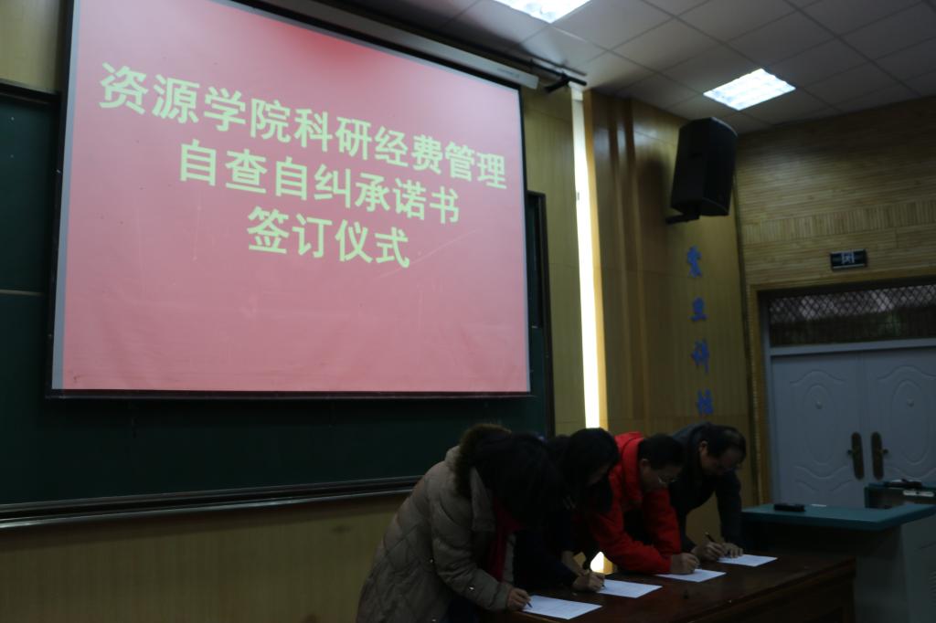 于教三楼110再次传达《关于贯彻落实学校科研经费管理专题会议精神的通知》的主要精神,各系所书记会上签订《科研经费自查自纠承诺书》。会议结束后,各系所教职工于12月11日至13日期间签订《科研经费自查自纠承诺书》。