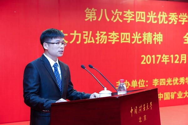 2014级矿产普查与勘探专业博士生杨锐荣获第八次李四光优秀博士生奖并作为学生代表发表获奖感言,他表示,很激动获得李四光优秀博士生奖,也很荣幸能够选择地质这个行业,作为新时代的青年地质学子,我们更应敢于担当、勇于超越,牢牢树立敢为天下先的志向和信心,敢于走别人没有走过的路。以“李四光优秀学生奖”为前行道路中不竭的动力,用“求实创新”精神点燃新时代“地质之光”,努力成为优秀的地质事业接班人。