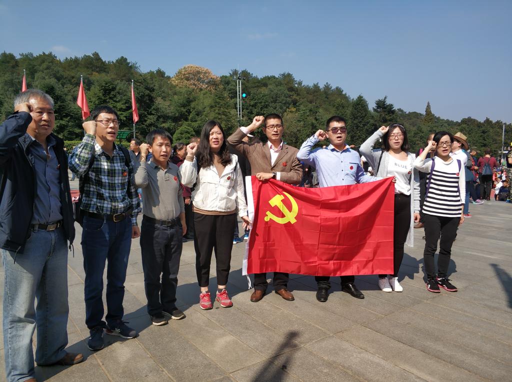 11月3日上午,大家首先来到韶山毛泽东广场瞻仰毛主席铜像。在场的全体党员怀着无比崇敬的心情,向伟大领袖毛主席敬献了花篮,并庄严肃穆地向毛主席铜像三鞠躬,然后缓缓地环绕一周,向毛主席铜像行注目礼,缅怀毛主席的丰功伟绩。礼毕,全体党员在支部书记庄新国同志的带领下,举起右手,集体重温入党宣誓时的庄严承诺和坚定决心,牢记共产党员的政治责任和历史使命。