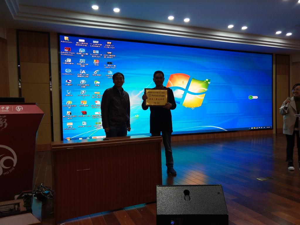 活动开始,赵葵东为萧山中学授予“中国地质大学先修课试点·萧山中学”铜牌。