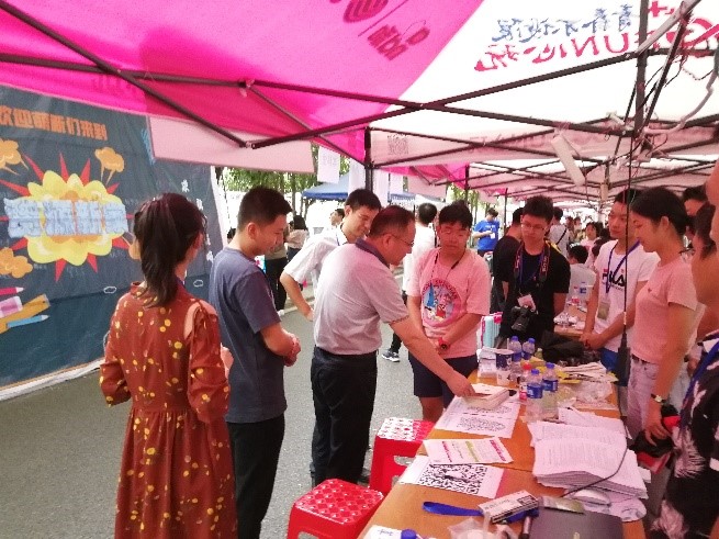 领导向19级新生致以诚挚的欢迎和问候,同时也对迎新志愿者们的工作进行了细致指导。
