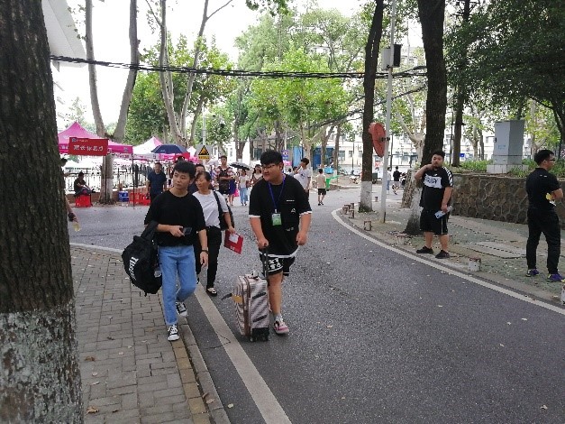 迎新工作8月31日早上8点便拉开帷幕,志愿者们早早就位,赶在新生报道之前做好充足的准备,为新生的大学生活留下第一个美好印象。