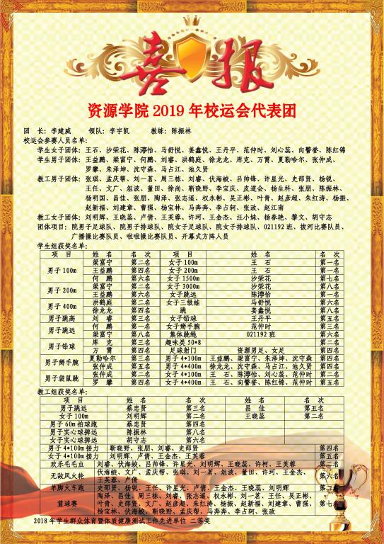 在三天的激烈竞争中,资源健儿们秉承着“更高、更快、更强”的体育精神在赛场上奋力拼搏,不断超越,最终取得了总成绩学生组男子团体第一名,女子团体第四名,教工组男子团体第六名,女子团体第六名的优异成绩,传承了威廉希尔
