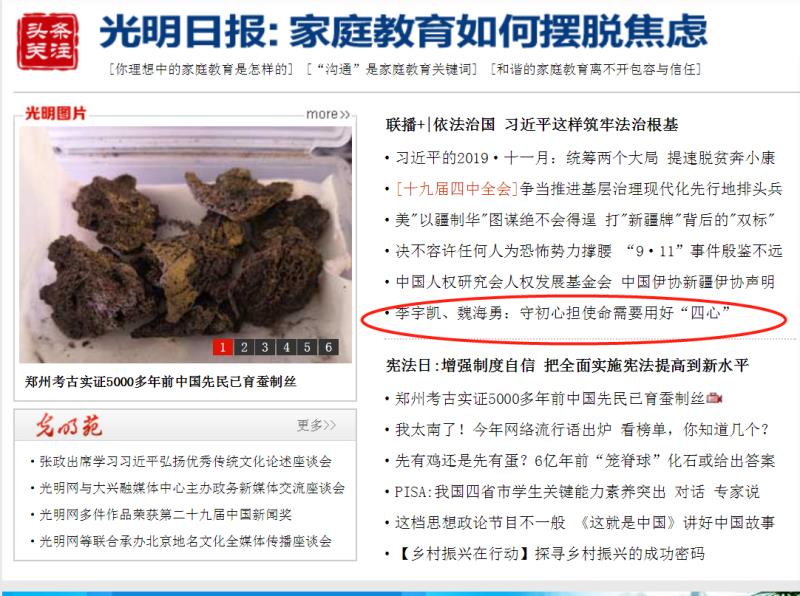 威廉希尔 党委书记李宇凯撰写的文章《守初心担使命需要用好“四心”》继在《中国地质大学报》刊登后,12月5日又得到光明网威廉希尔首屏推送和全网转发。